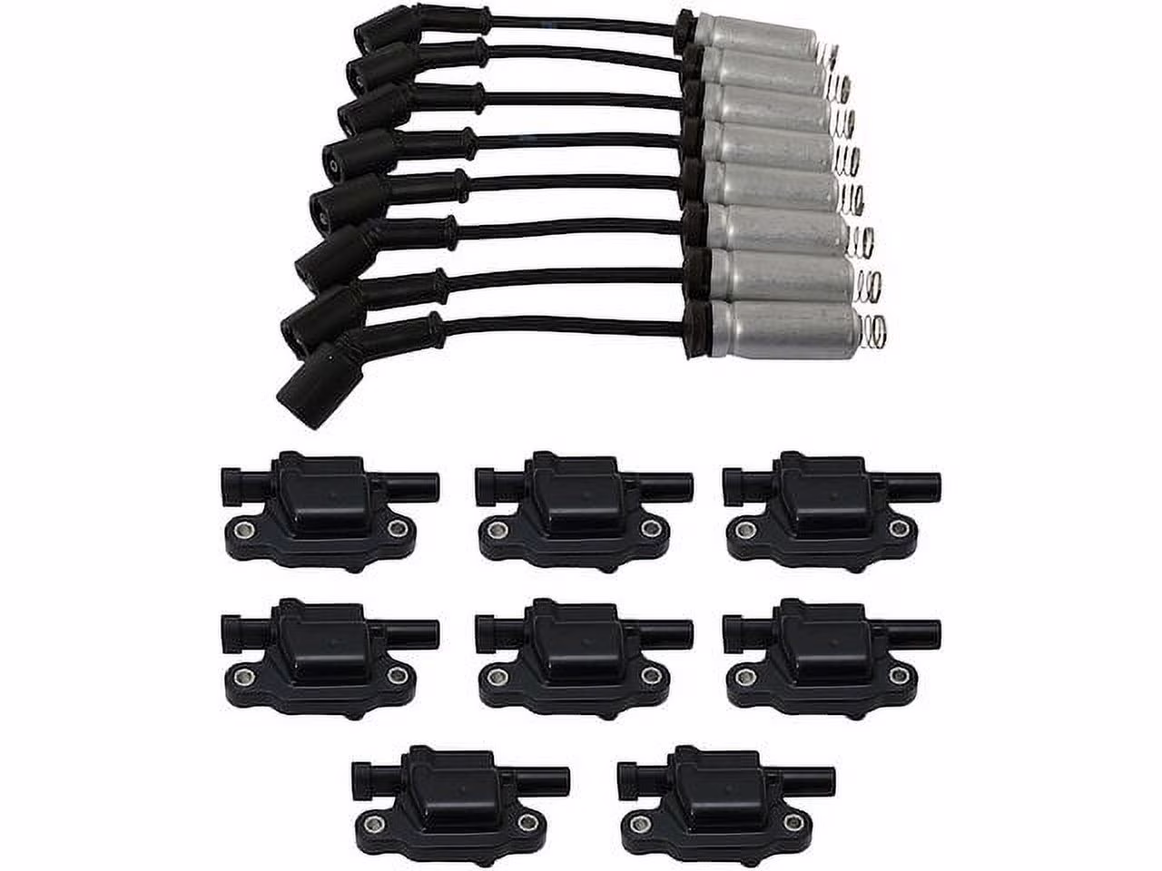 Ignition Coil and Spark Plug Wire Set 9 Piece - Compatible with 2014 - 2021 Chevy Silverado 1500 2015 2016 2017 2018 2019 2020