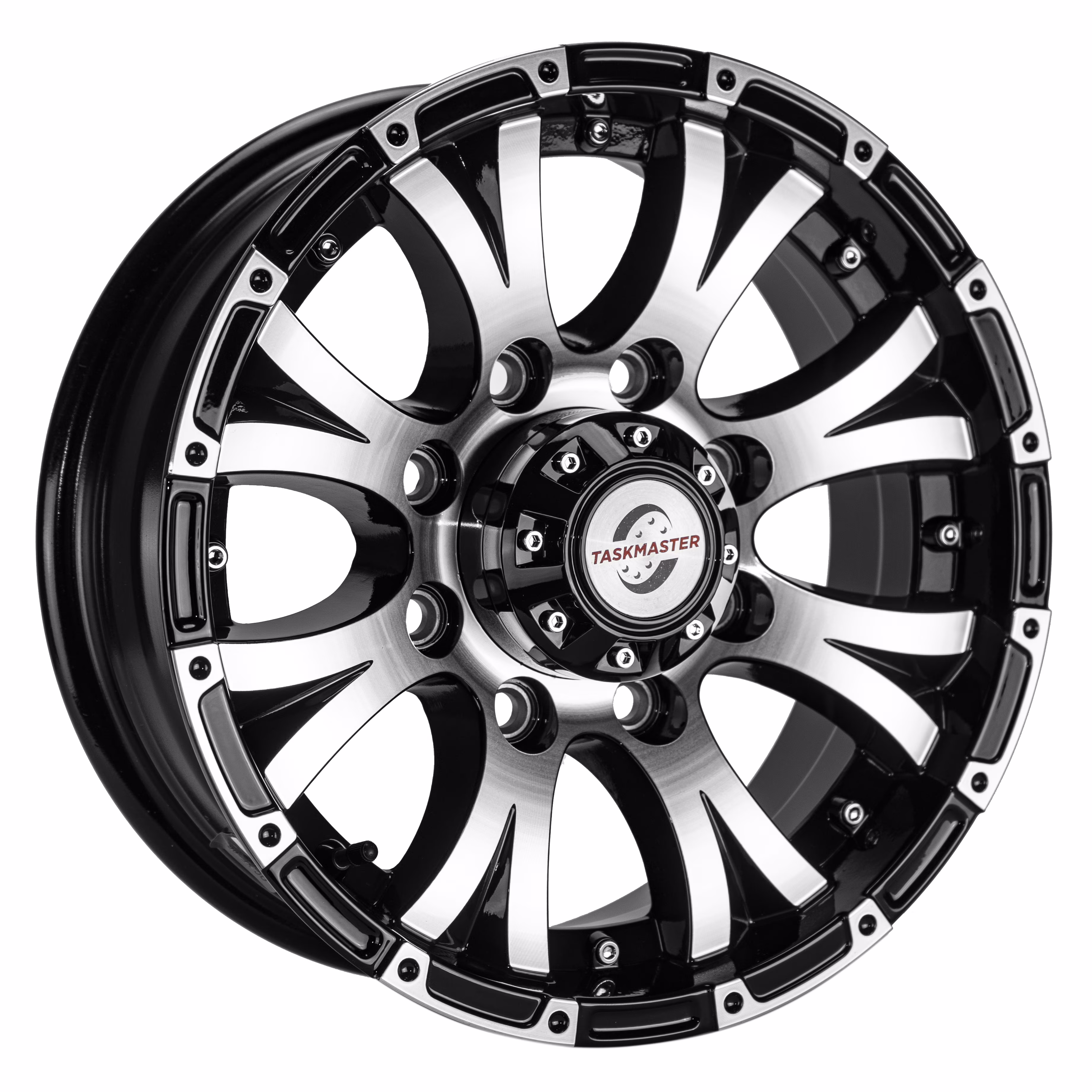 Viking Series Machined Lip and Face Gloss Black Aluminum Trailer Wheel with Black Cap - 16" x 6" 8 On 6.5 - 3750 LB Load Carrying Capacity - 0 Offset