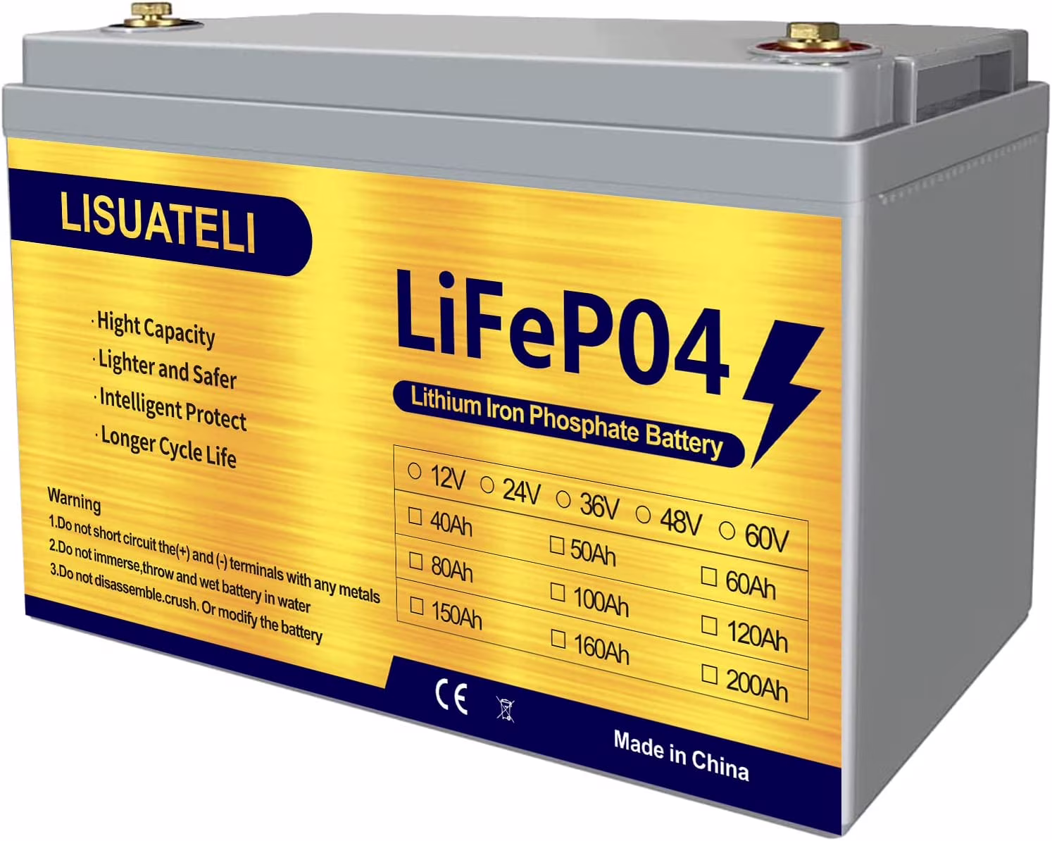 LISUATELI 12V 100Ah Lifepo4 Lithium Batteries Up to 3000-7000 Deep Cycles for Golf Cart Solar RV Camper Marine Battery