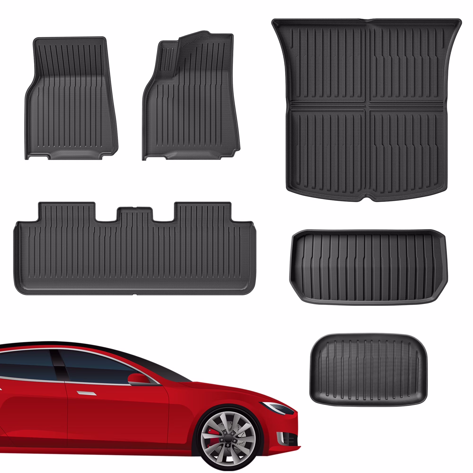 Floor Mats Fit for Tesla Model Y 2024 2023 2022 2021 Custom Fit All Weather TPE Protection Floor Mats Set (6 Pieces) Cargo Liner Cargo Trunk Accessories,Heavy Duty Accessories,Black