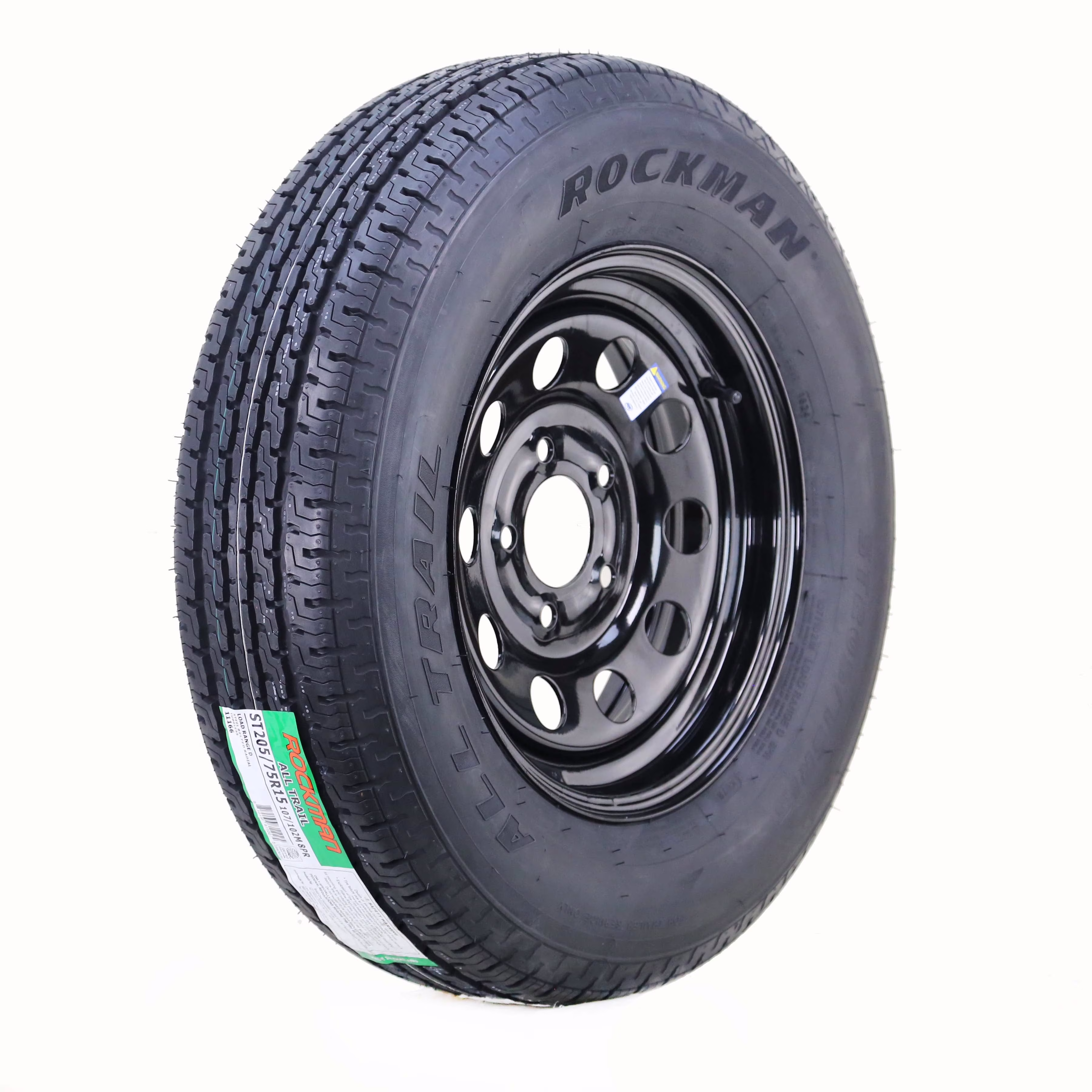 ROCKMAN Trailer Tire Wheel Assembly ST205/75R15 8-Ply D 107M 5 Lug on 4.5" PCD Black Mod Rim