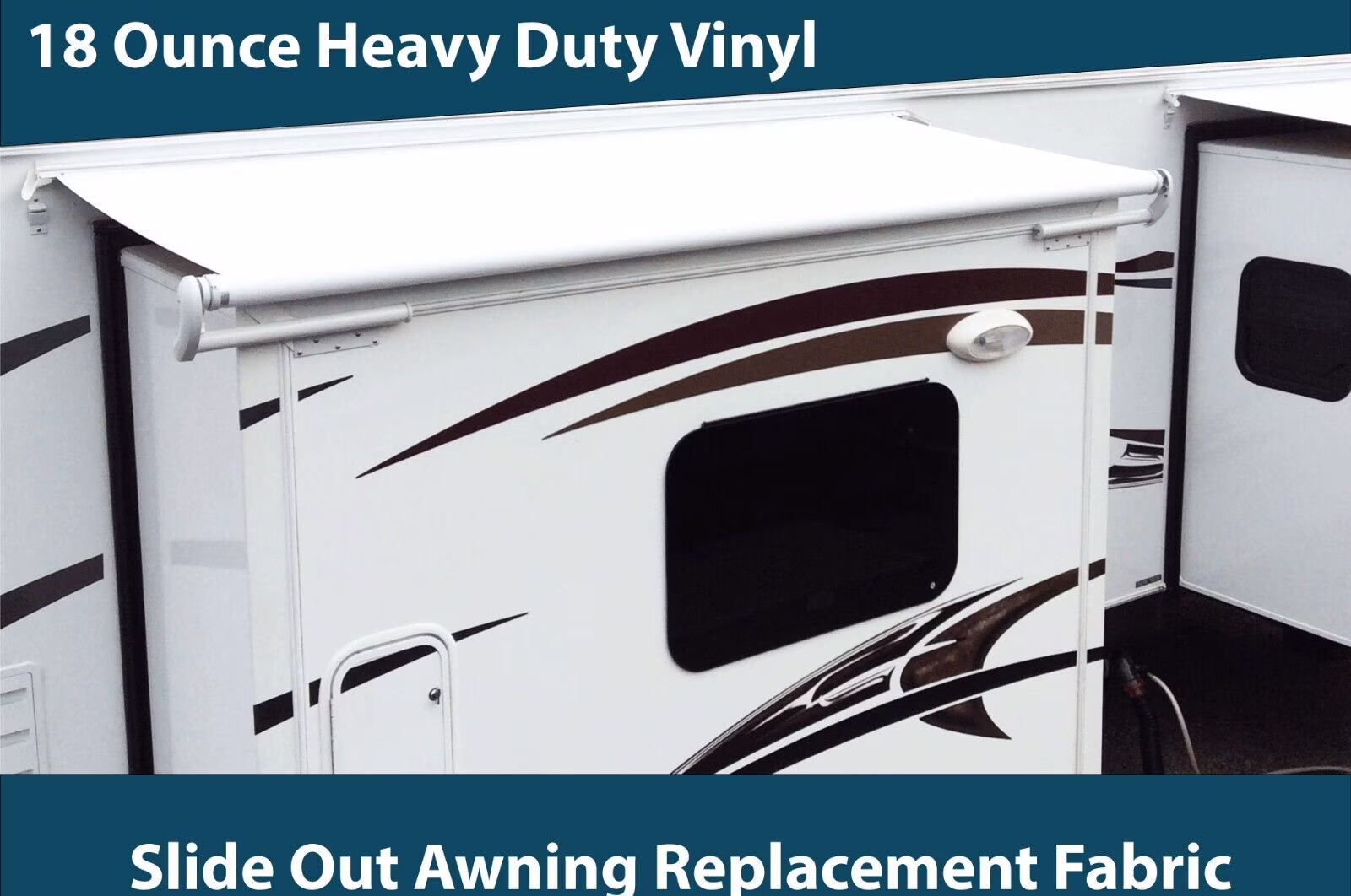 RV Slide Out Awning Replacement Fabric White- 5 Year Warranty Choose Size