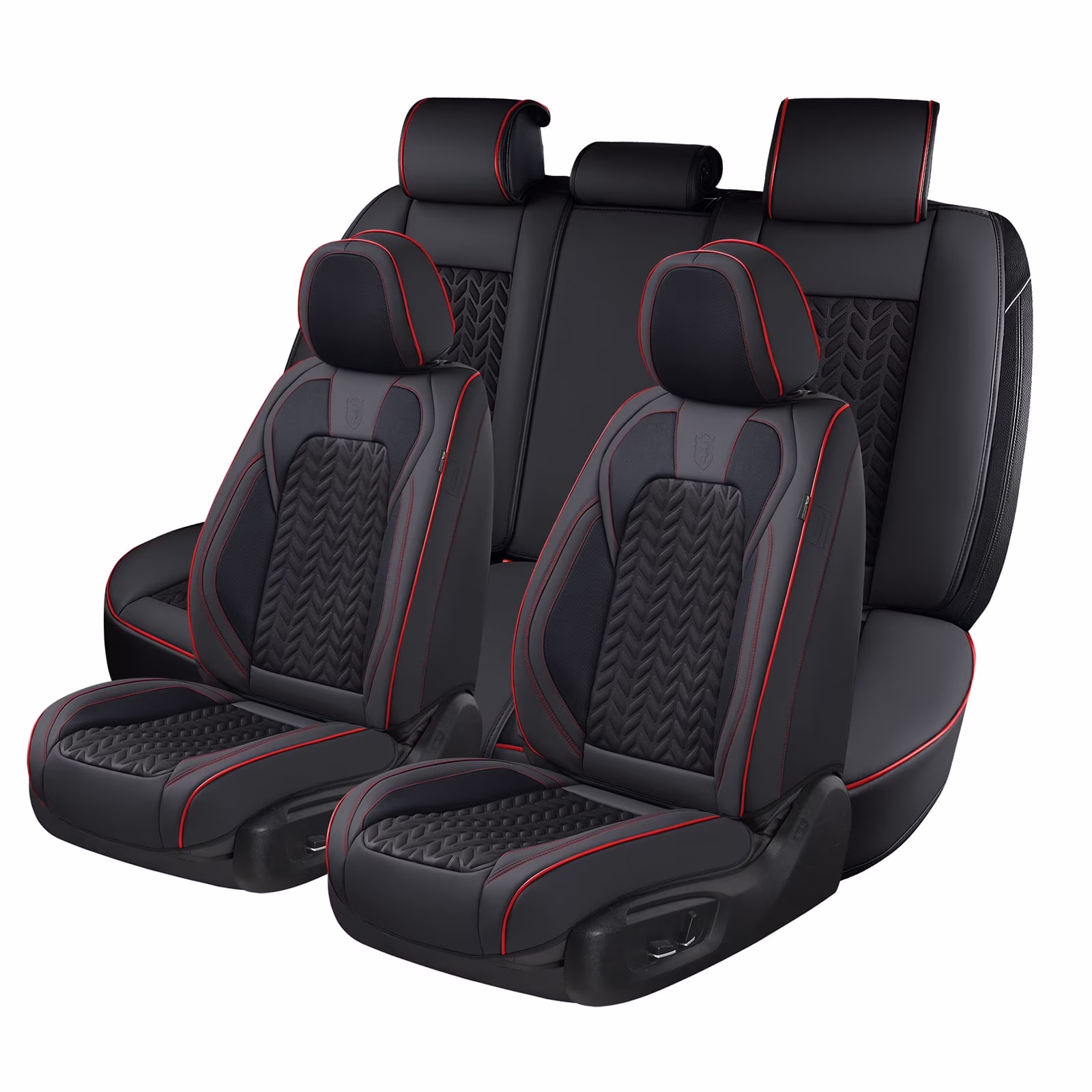 Coverado Black Car Seat Covers Full Set, Faux Leather Seat Protectors with Embossed Grains, Front and Back Auto Cushions Universal Fit Most Cars, Sedans, SUVs and Trucks