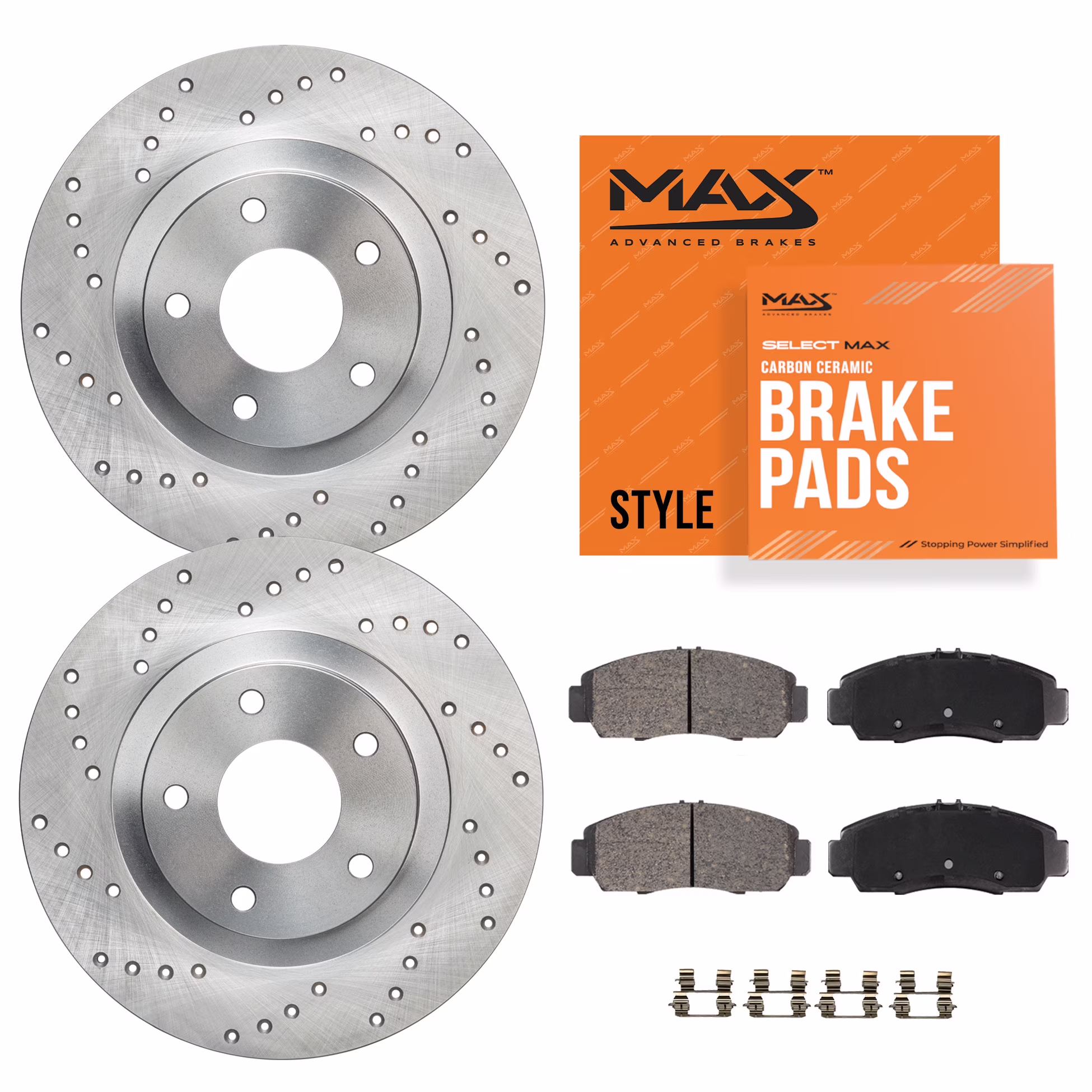 Max Advanced Brakes - Brake Kit for 2018 2019 2020-2023 Hyundai Kona w/ 2.0L FWD 2021-2023 Kia Seltos w/ FWD MPB Rear Replacement Cross Drilled Disc Brake Rotors and Ceramic Brake Pads