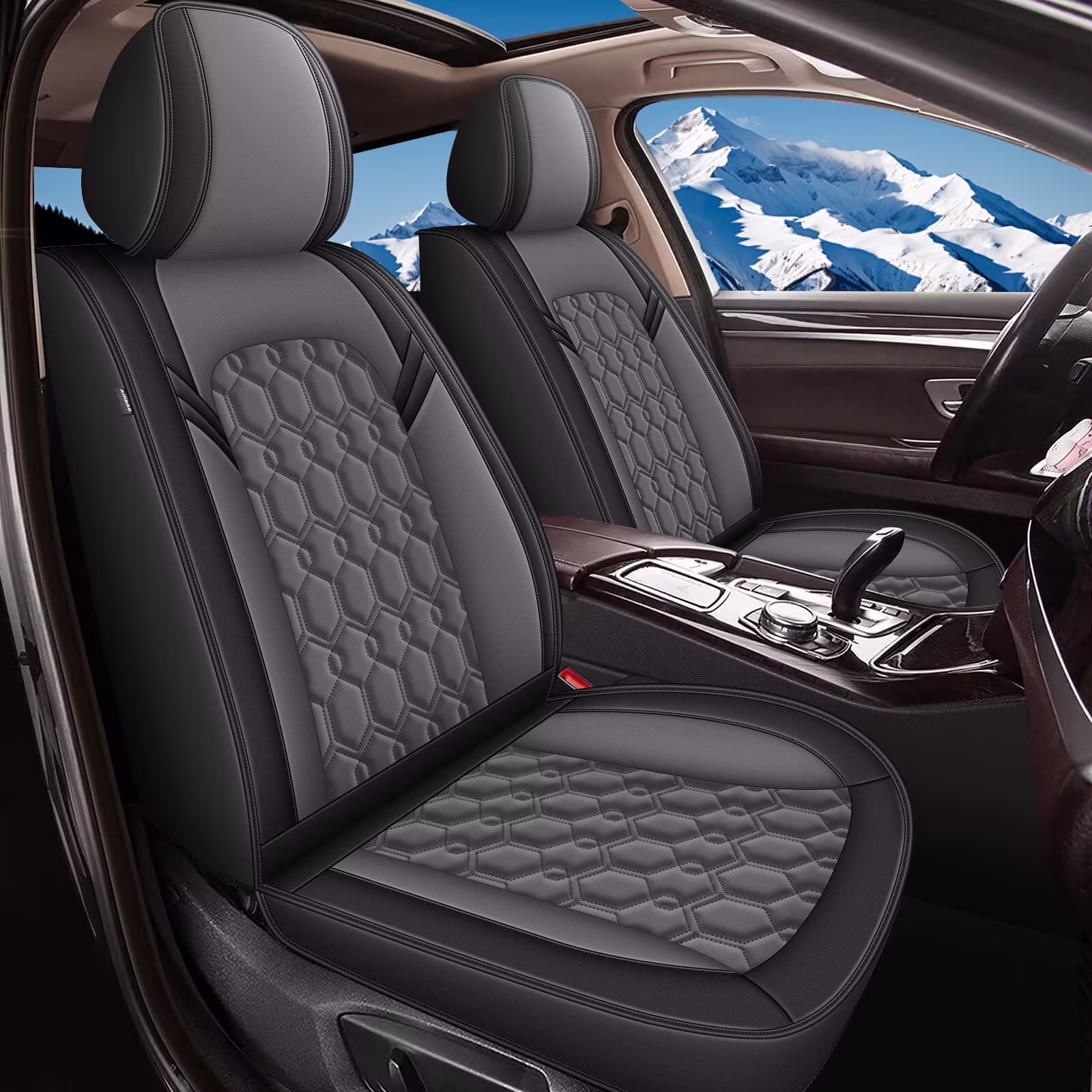AOMSAZTO Car Seat Covers Full Set Fit for Kia Forte 2010-2024 2025: Waterproof Leather Automotive Seat Cushion Protector(Black + Gray)