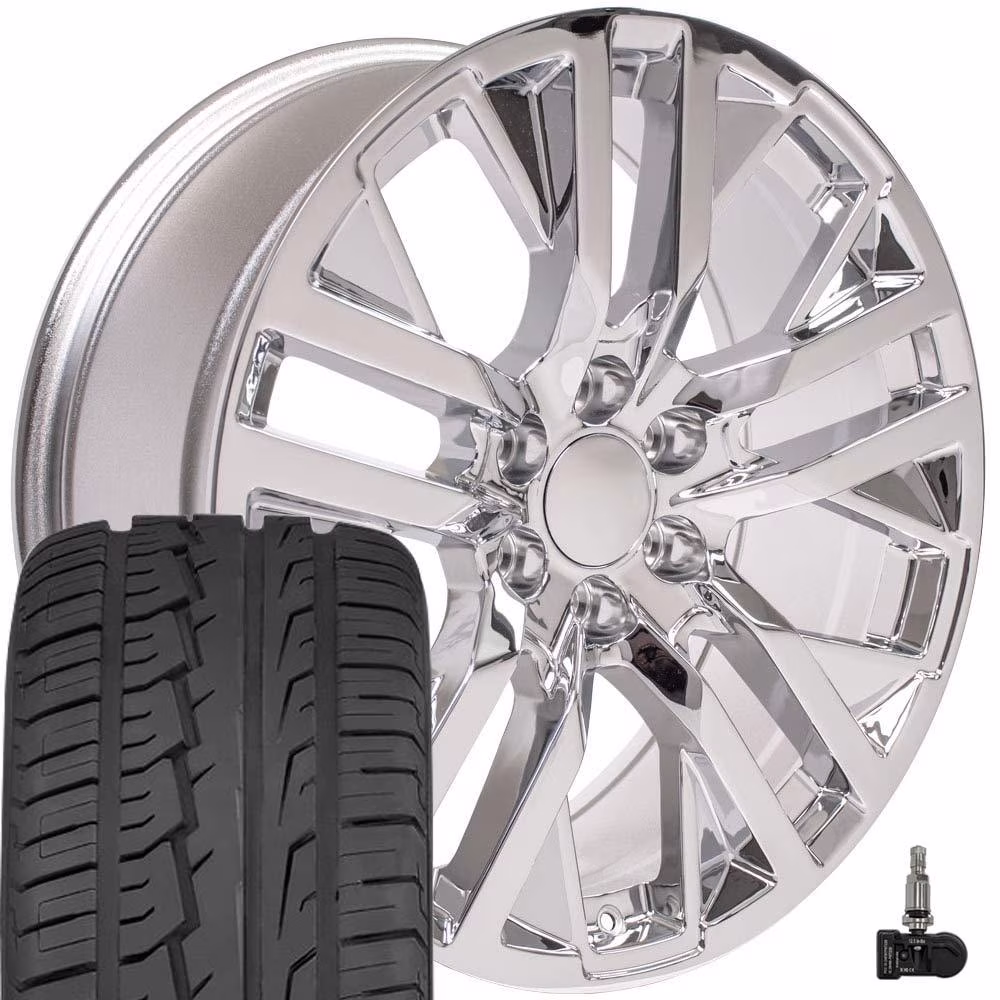 22 inch Chrome 5903 OE Wheels, Tires, TPMS Fit GM Trucks & Suv's RST Style Rims
