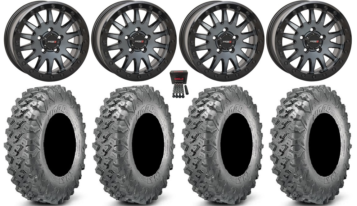 System 3 SB-8 Bdlk 15" Wheels Gy +38mm 35" Lynx SXS Tires Polaris RZR Turbo R & Pro R Ranger 1500 Xpedition