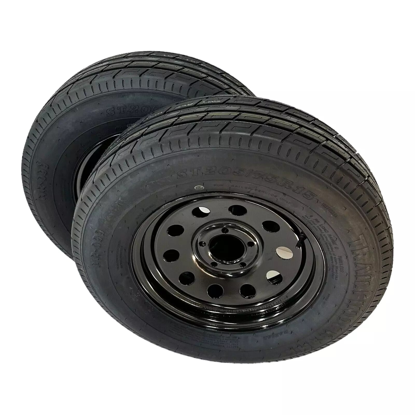 2-Pack Trailer Tire on Rim ST205/75R15 TrailFinder HT Radial 8 Ply Radial LRD 5 Lug Black Modular Wheel 5X4.5" Bolt Pattern