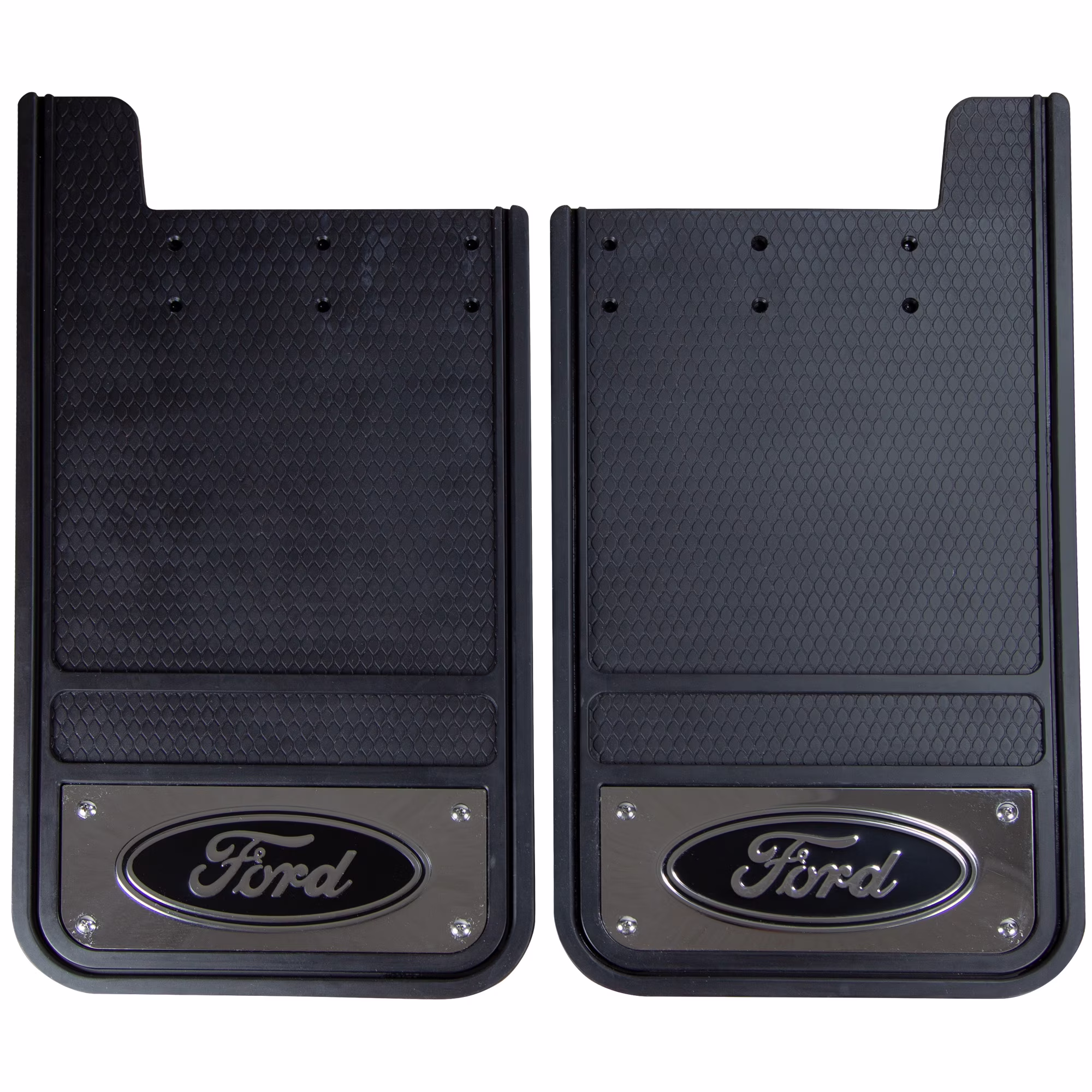 Plasticolor Ford 12” x 23” Heavy Duty Universal Fit Automotive Rear Mud Guards, Black, 1 Pair