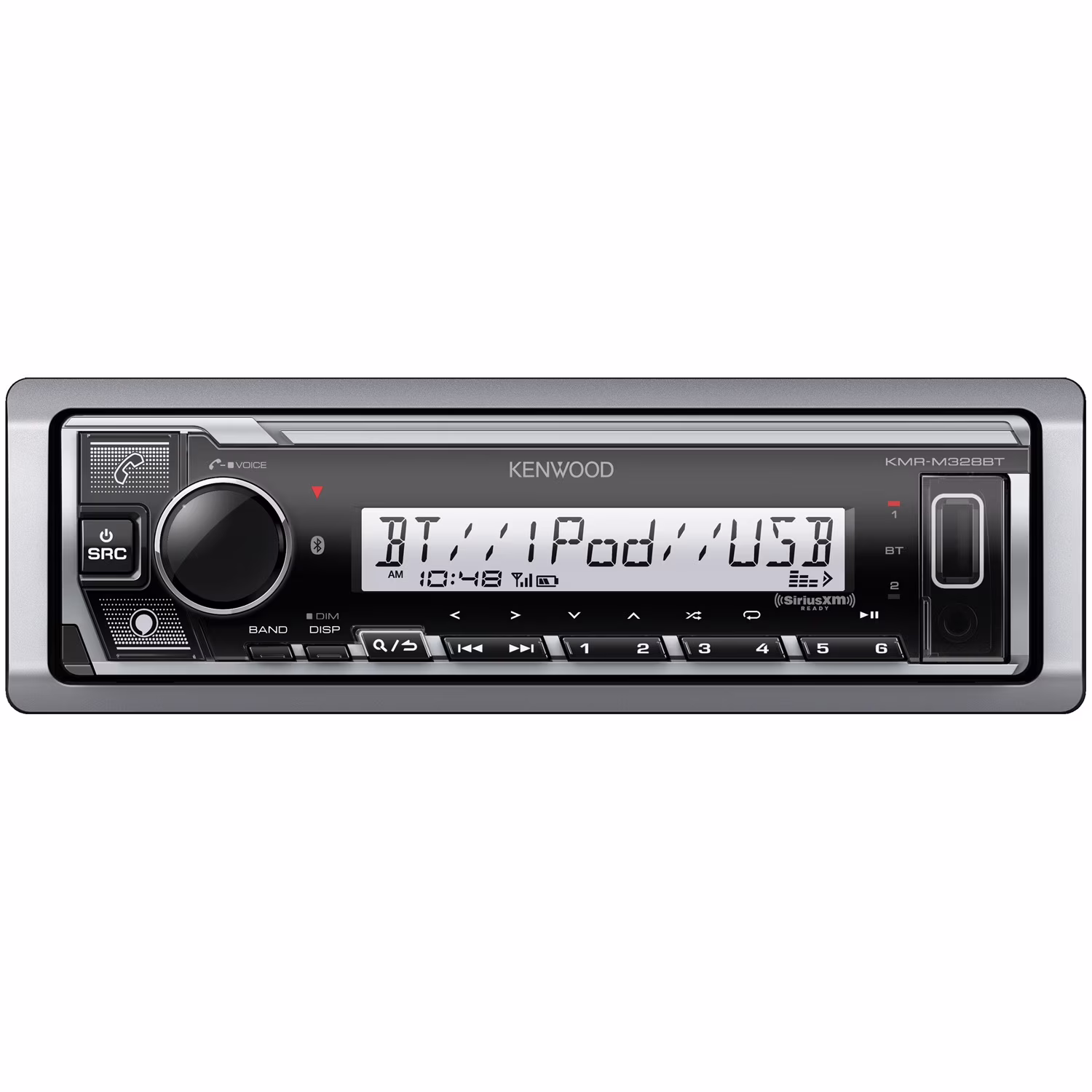Kenwood KMR-M328BT Marine and Powersports Single-Din In-Dash All-Digital Media Receiver with Bluetooth, Electronic Voice Assistant, and SiriusXM Ready