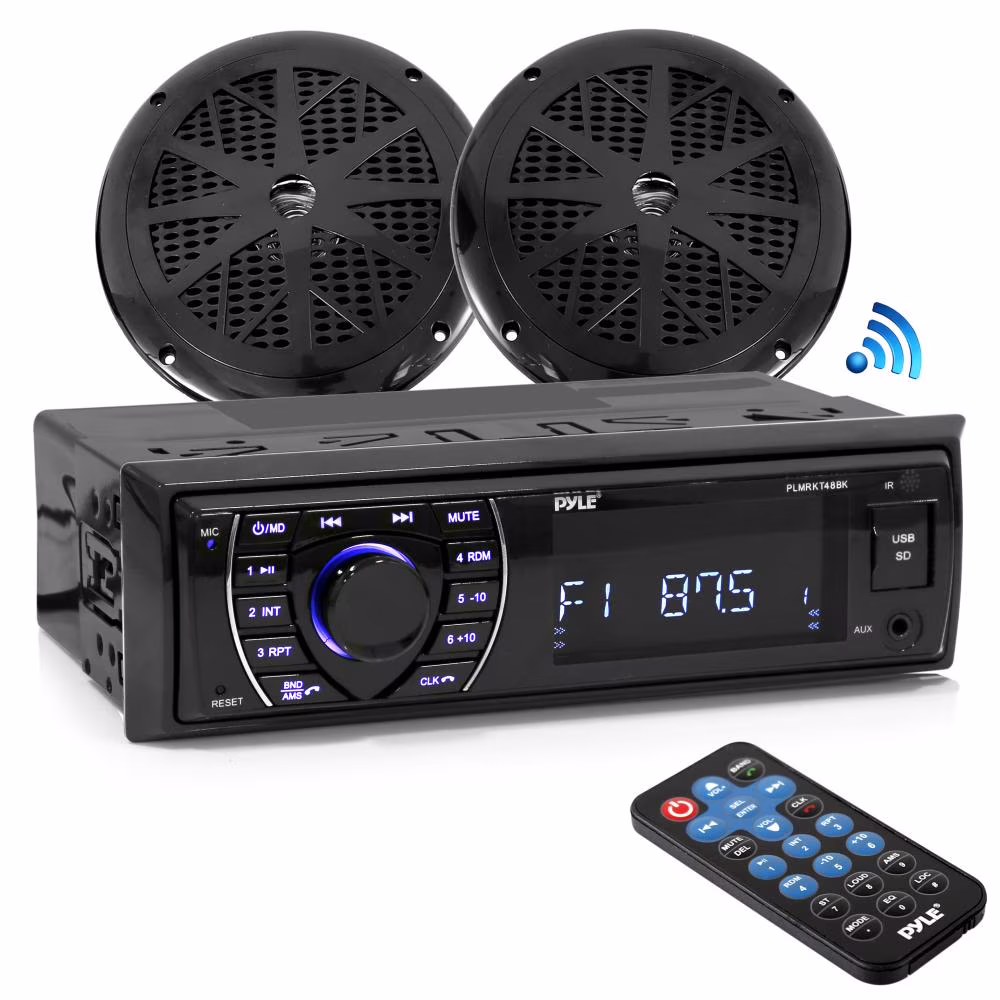 Pyle PLMRKT46BK 5.25 Inch Bluetooth Marine Receiver Stereo & Speaker Kit, Black