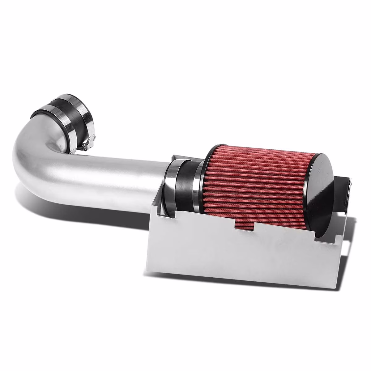 DNA Motoring AIP-2-HS-DMAG05V8-SLSL For 2005 to 2010 Charger 300C Magnum Challenger SRT8 Silver-Coated Aluminum Cold Air Intake Pipe+Heat Shield+Red Filter 08 09