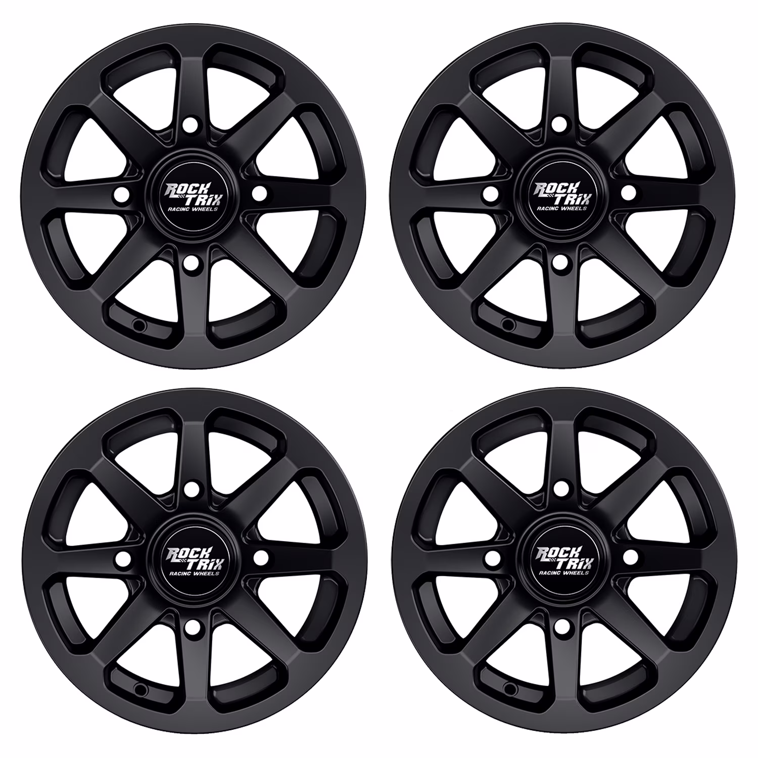 RockTrix RT102 12in ATV Wheels Rims 12x7 Matte Black, 4x156 Bolt Pattern, 4+3 offset, Compatible with Polaris Sportsman RZR Ranger (4/156) (Set of 4)