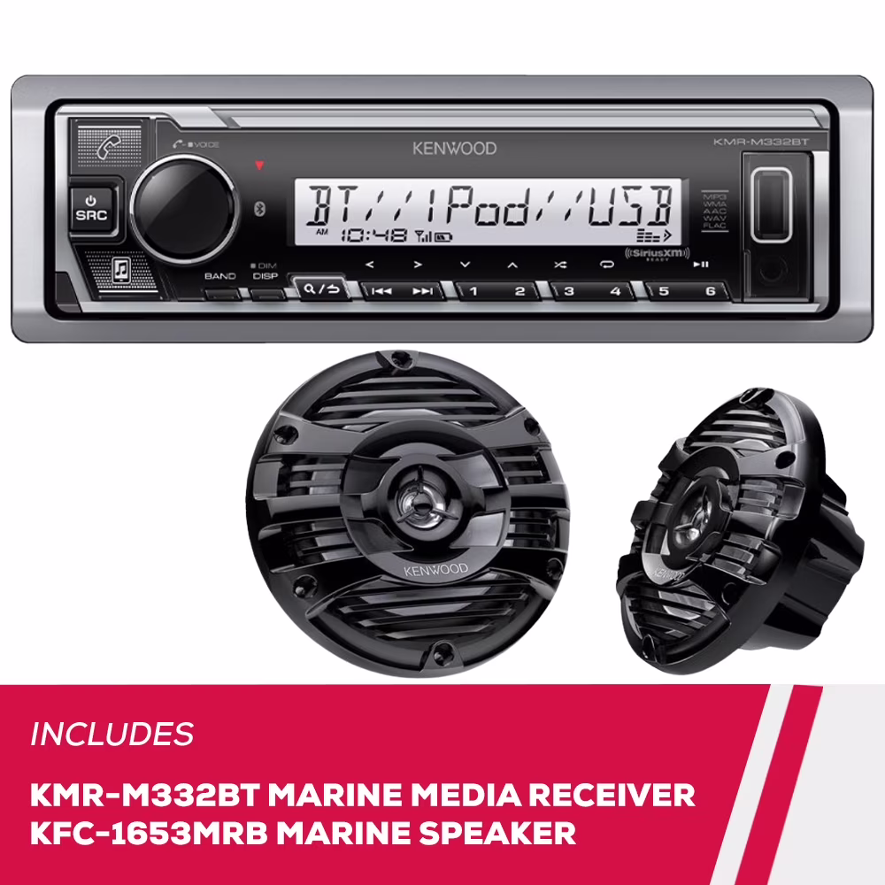New Kenwood KMR-M332BT Marine Digital Media Receiver and KFC-1653MRB 6.5" Speakers