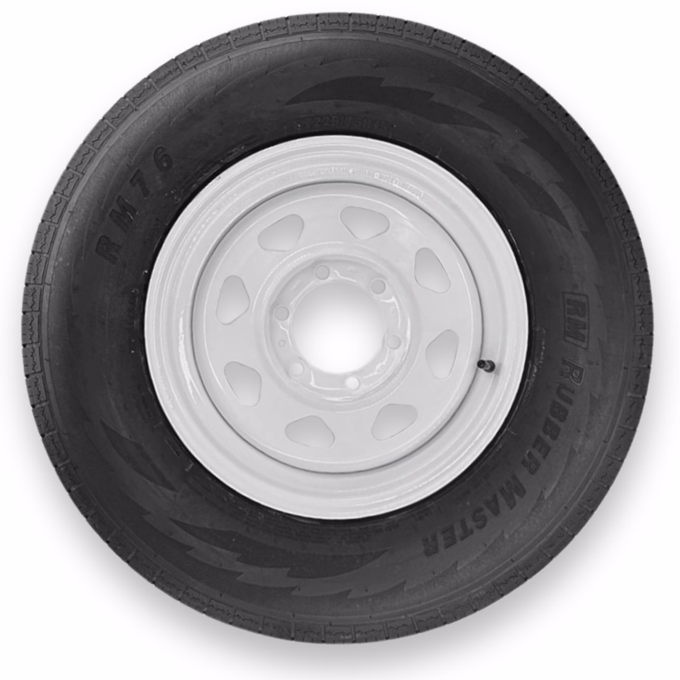 RubberMaster ST225/75R15 8 Ply Highway Rib Tire and 6 on 5.5 Eight Spoke
