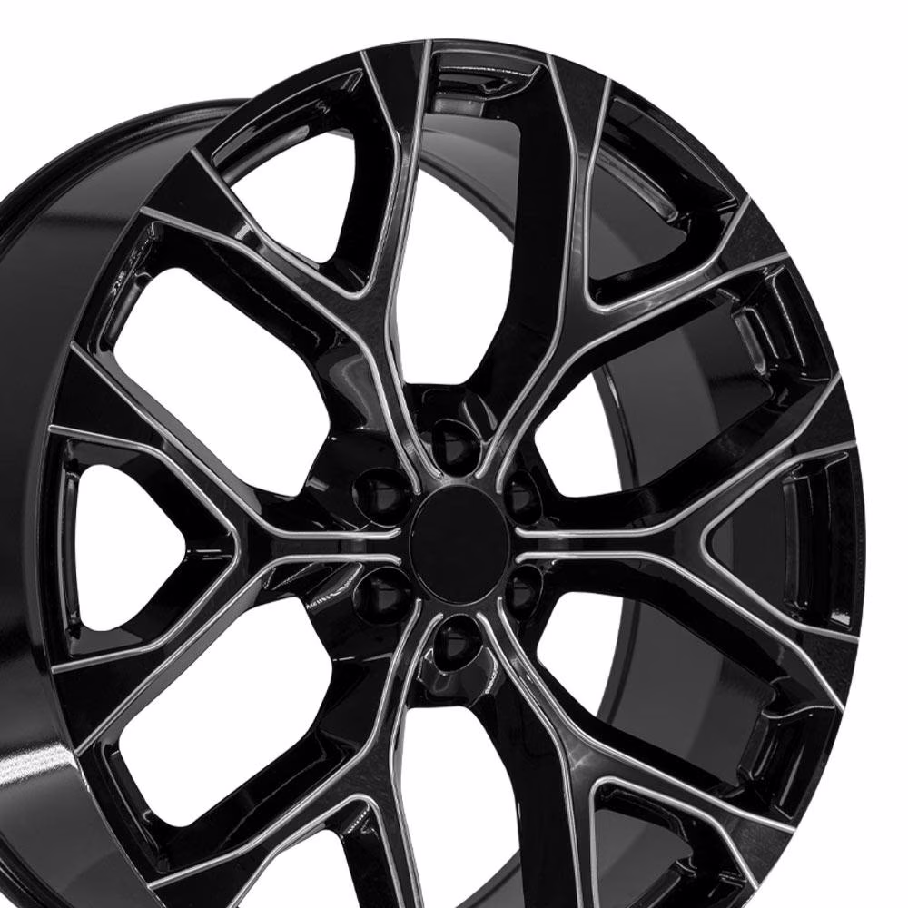 OE Wheels CV98 26 Inch Rims Fit Silverado 1500 Snowflake Style 6x139.7 26x10 Gloss Black with Milled Edge - Hollander 5904 (Set of 4)