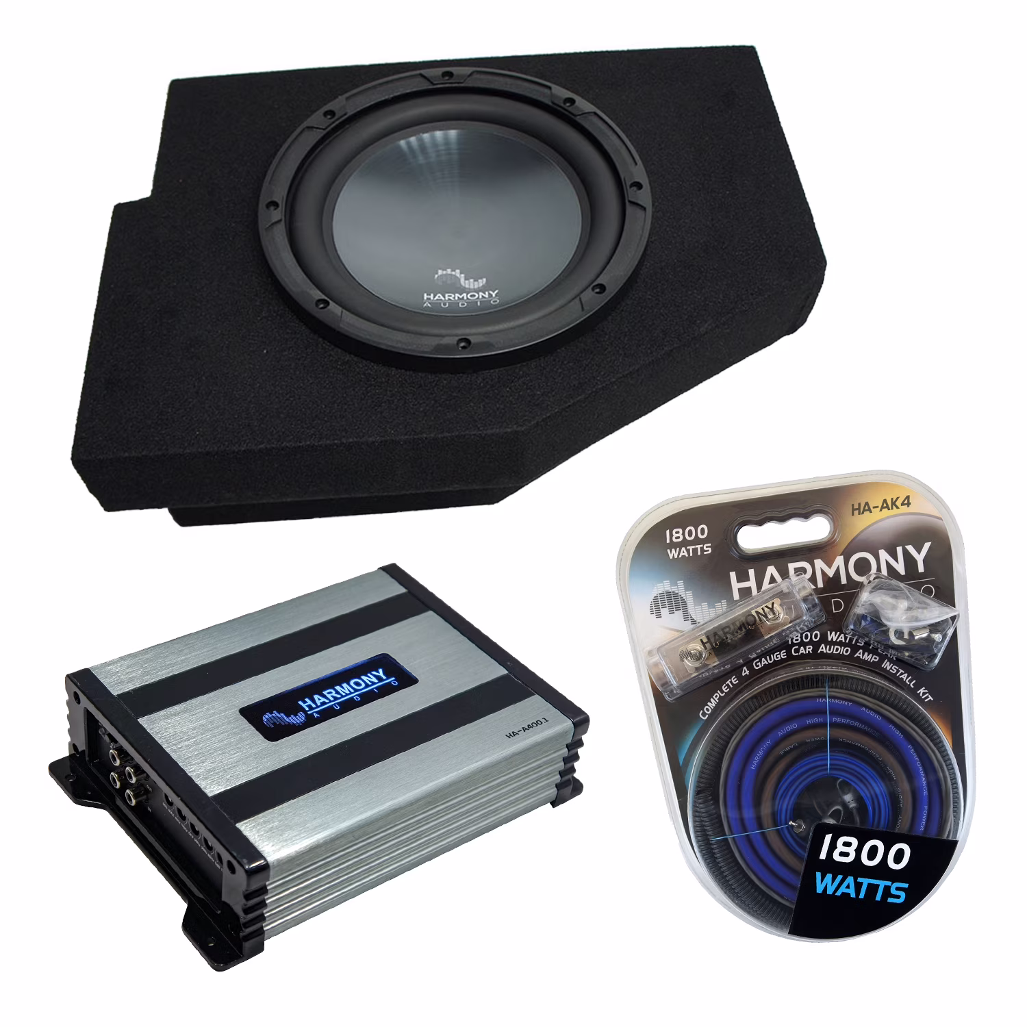 02-18 Fits Dodge Ram Quad / Crew Harmony R104 Single 10" Sub Box & HA-A400.1