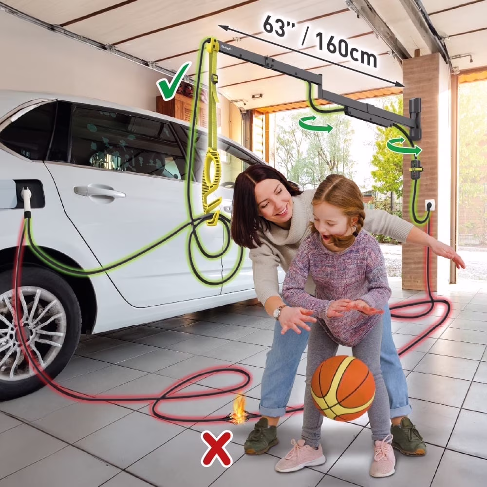 Barkan, Retractable EV Charger Cable Wall Arm, 63" length, 5 Year Warranty, Weatherproof, Retractor Arm, for Level 1 and Level 2 EV chargers