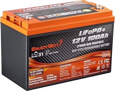 Enjoybot 12V 100Ah LiFePO4 Lithium Battery, 4000+ Deep Cycle with Low-Temp Protection, 100A BMS and Max 6S4P for RV, Marine, Solar, Off-Grid
