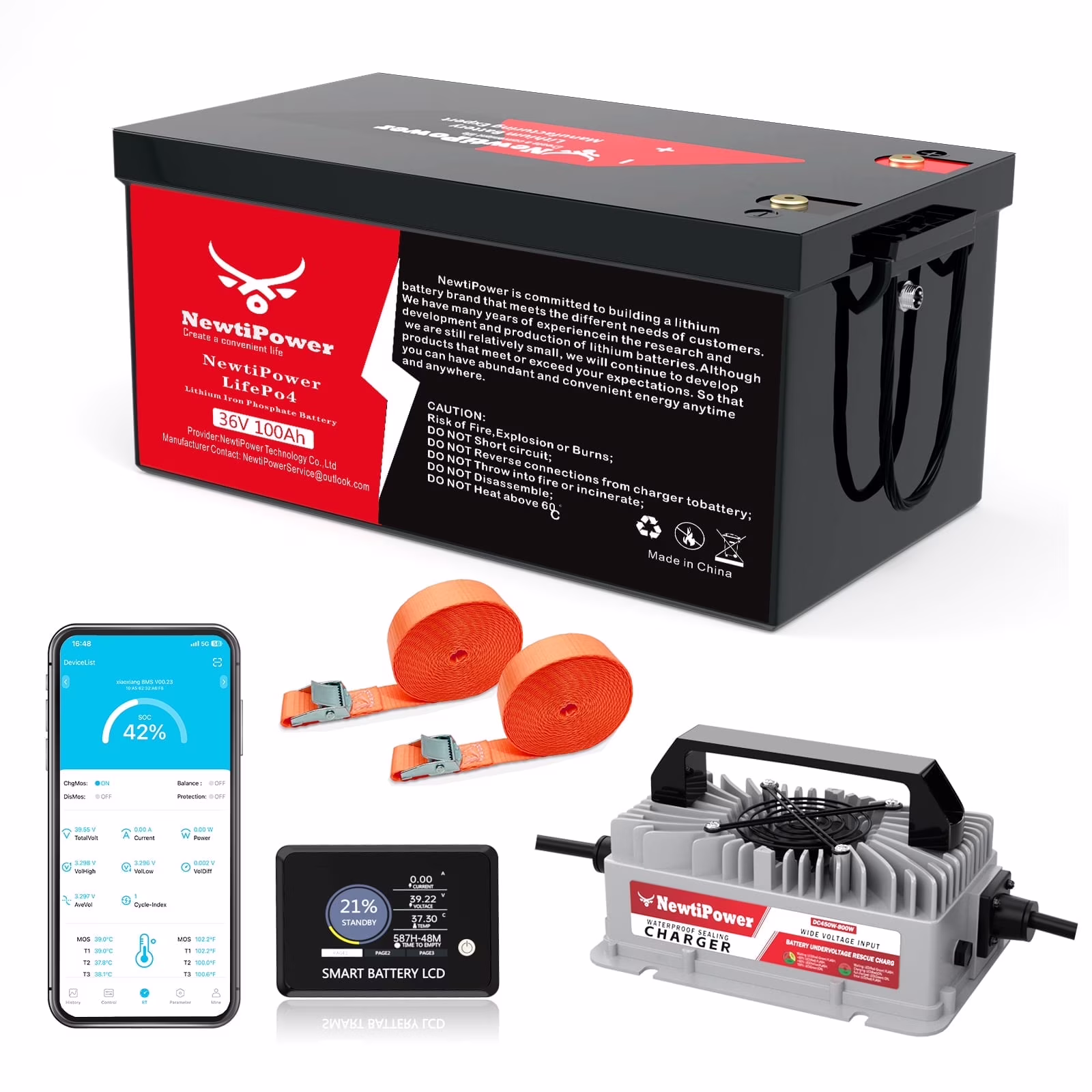 36V 100Ah LiFePO4 Lithium Battery 2000A BMS,NewtiPower 10000+ Deep Cycle Lithium Iron Phosphate Battery Great for Golf Cart, RV, Marine and Off Grid Applications