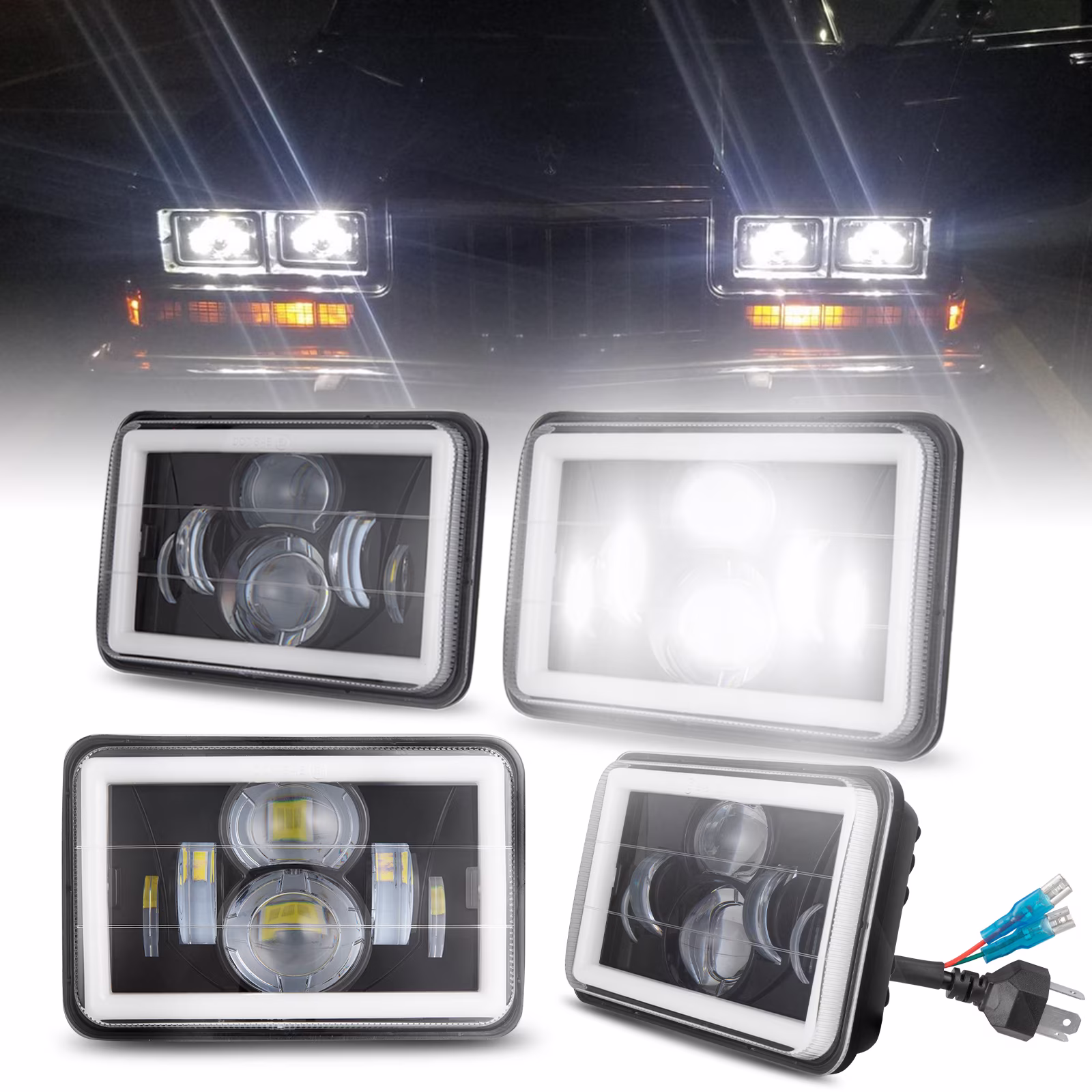 4PCS 4x6" inch LED Headlights High Low Turn Signal Fit Ford LTL9000 Truck LTD