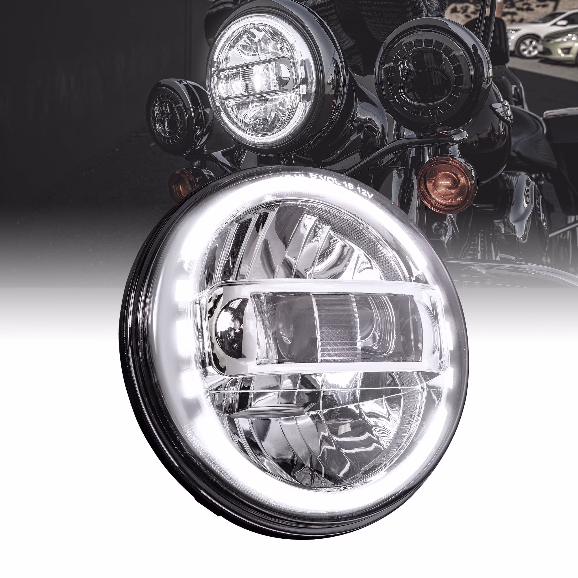 Chrome 7" HALO DRL LED Headlight for Harley Davidson Electra Glide Road