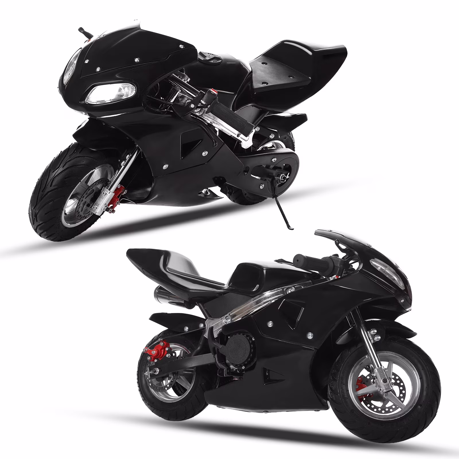 49cc 2-Stroke Pocket Bike,Mini Gas Motorbike,Off Road Trail Bike Dual Headlights Rubber Handlebar 1.25L Gas Tank Motorcycle Strong Power 170 lbs Mini Bike Motorcycle USA Warehouse (Black)