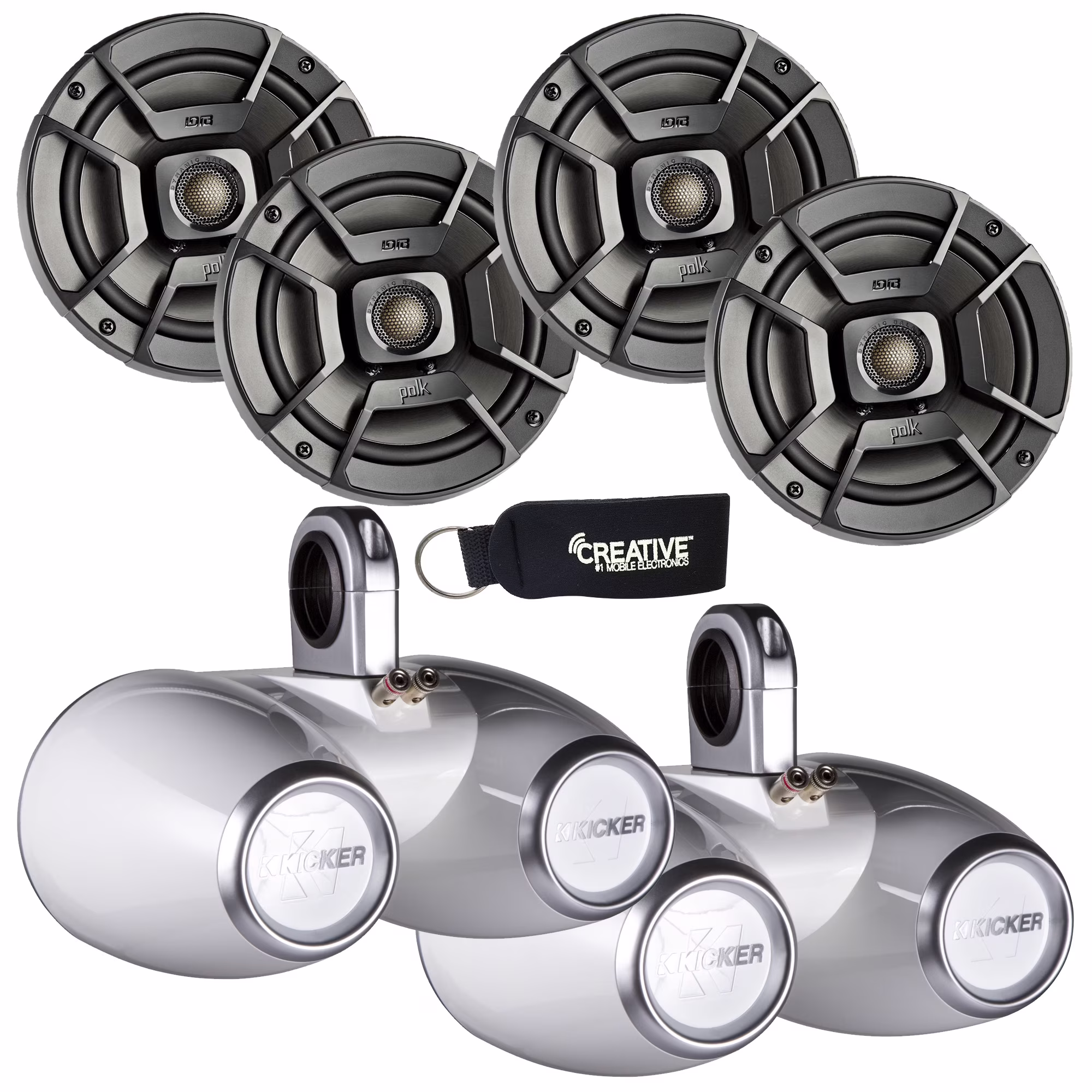 Polk Audio Marine Wake Tower Package with 4 DB652 6.5" Coaxial Speakers and Dual Wake Tower White Enclosures