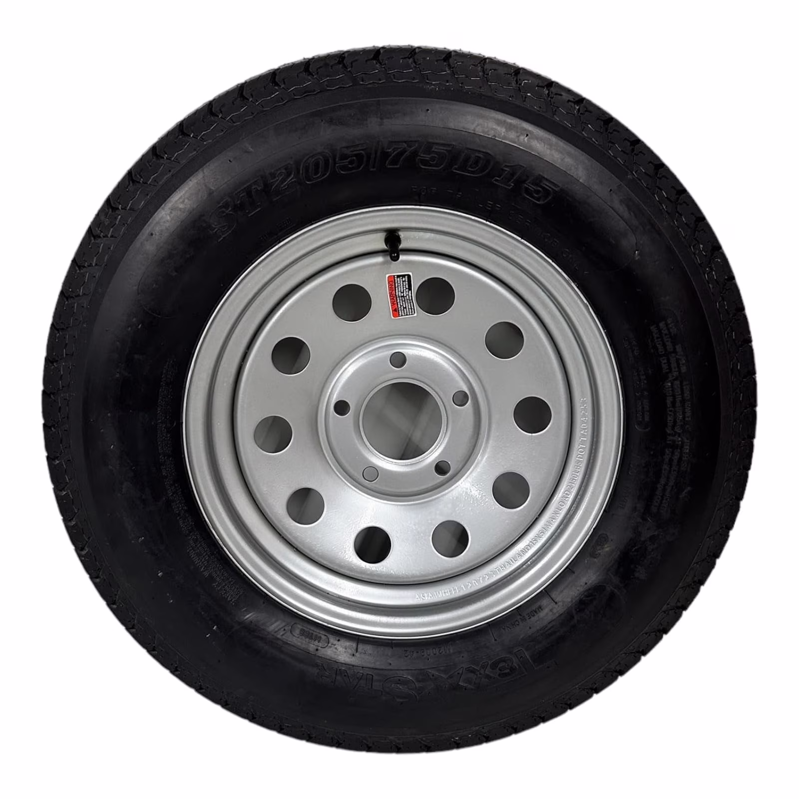 Mounted Trailer Tire on Rim ST205/75D15 Tex Star LRC 6 Ply Bias 5 Lug Silver Modular Wheel 5x4.5" Bolt Pattern