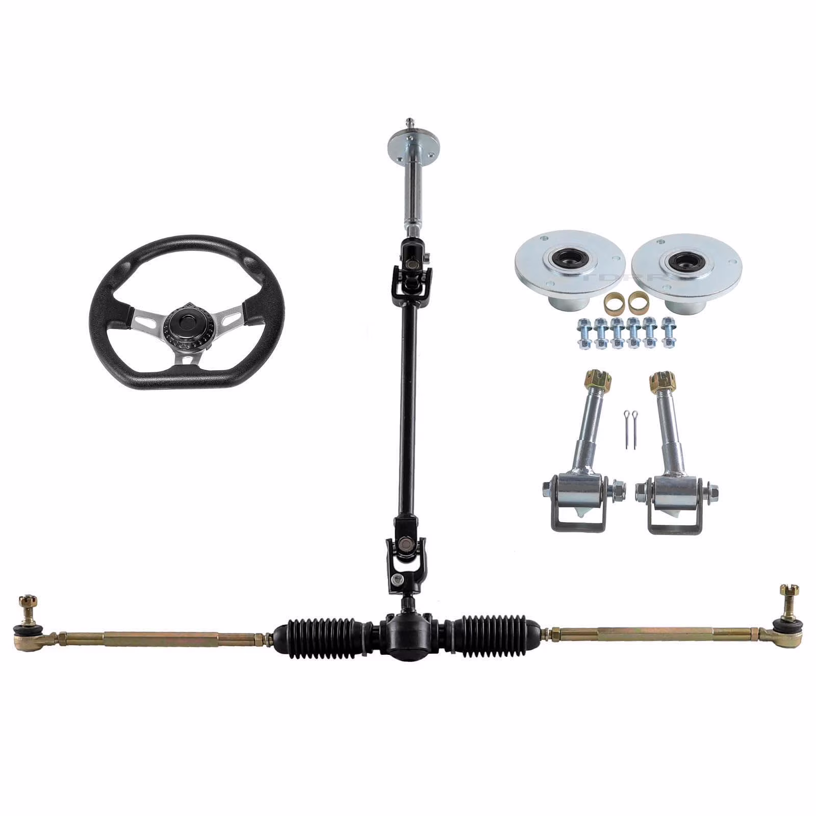 Steering Wheel Kit, Front Steering Gear Rack Joint Tie Rod & Wheel Assembly, Front Axle Kit Front Steering Assy Go Kart Drift Trike Tie Rod Wheel Hubs Ball Joint for DIY ATV Quad Go Kart Cart