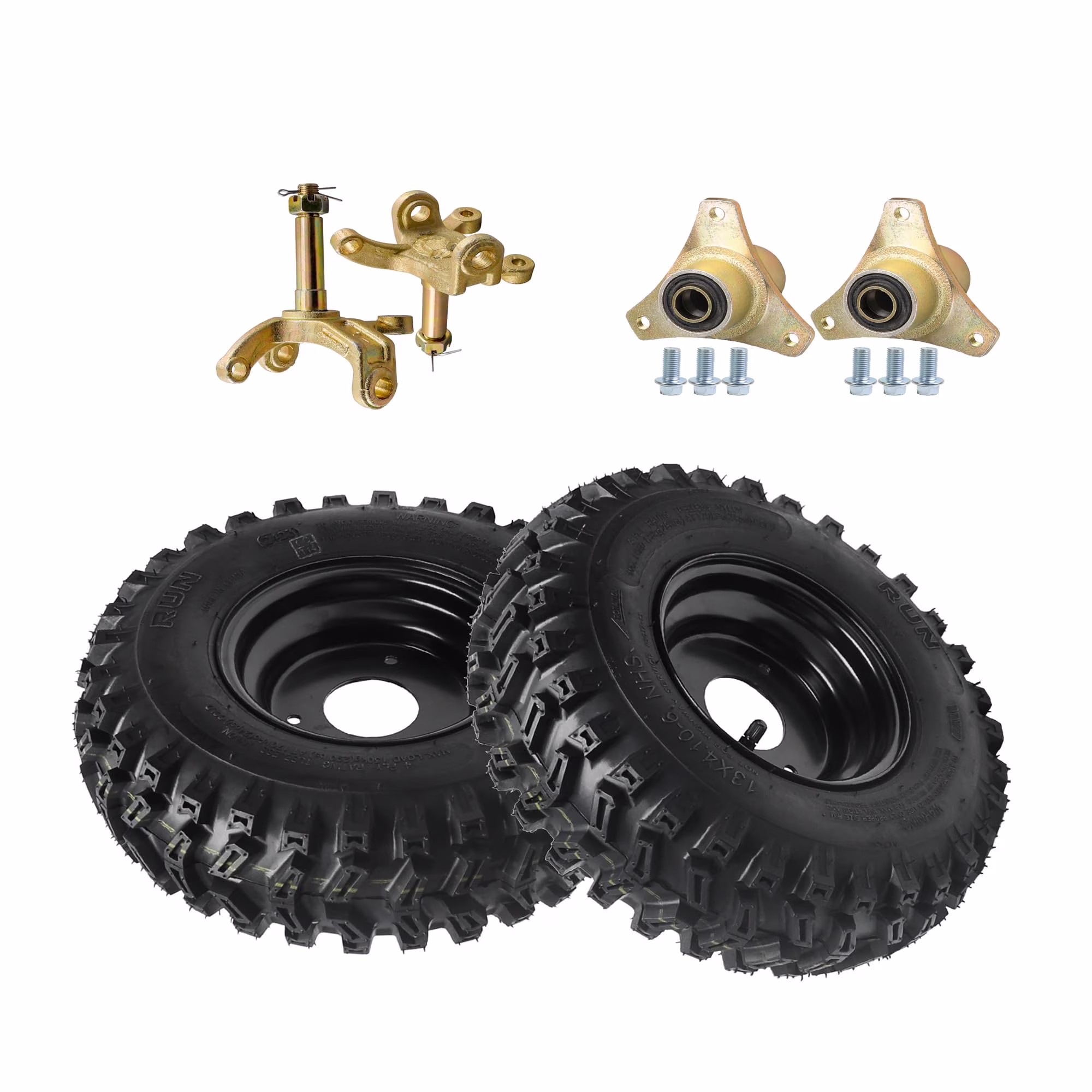 2pcs 6 inch Wheels 13x4.10x6 13x4.10-6 Wheel Tire and Rim 3 Stud 4Ply Tubeless Wheel with Front Steering Spindles Hubs for Snow Blower Thrower Mini Bike ATV Quad Buggy Go Kart Tires (TK0352)