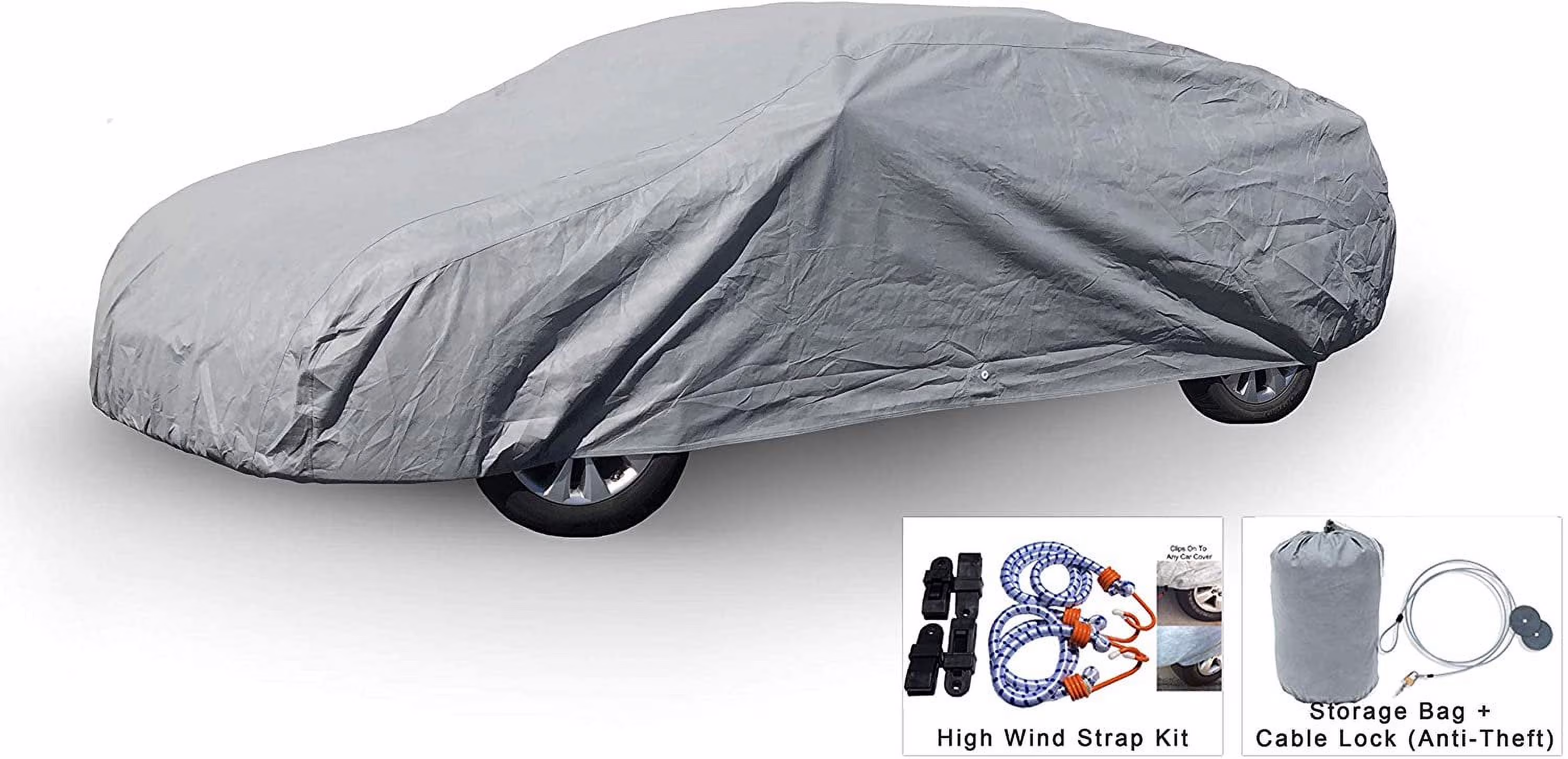 Weatherproof Car Cover Compatible with Chevrolet Corvette C1 1953-1957 - 5L Outdoor & Indoor - Protect from Rain, Snow, Hail, UV Rays, Sun - Fleece Lining - Anti-Theft Cable Lock, Bag & Wind Straps