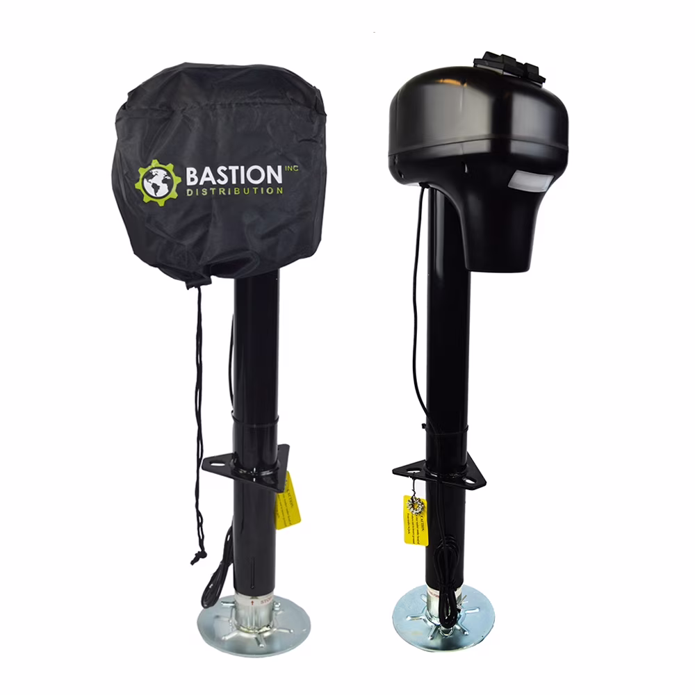 Bastion Distribution Electric Jack with Cover | 3500LB Capacity | 12V | LED Light | 3-Setting Footpad | Trailers Campers RVs | BJ3500B/BJ-CV