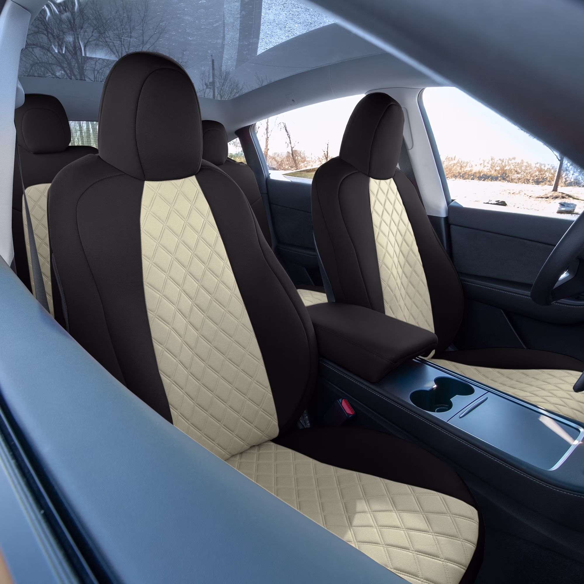 TLH Beige Full Set Neoprene Custom Fit Seat Covers for 2020 - 2024 Tesla Model Y