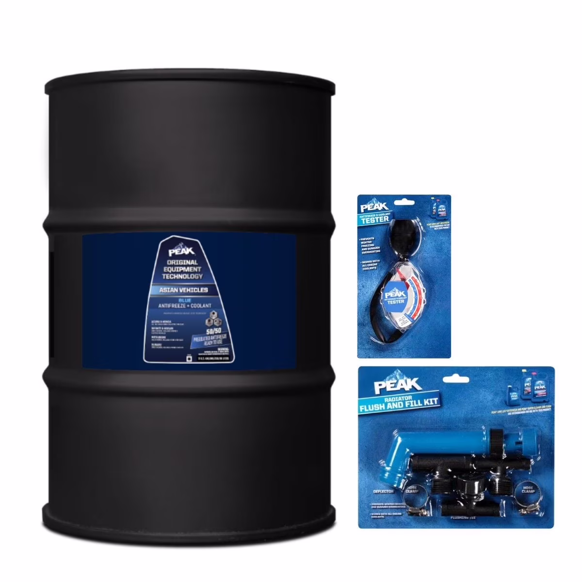 PEAK OET Asian Antifreeze/Coolant, 50/50 Prediluted Blue POAT, 400,000 Miles/15 Years for Car, SUV & Truck, 55-gal Drum, PEAK Accessories Included