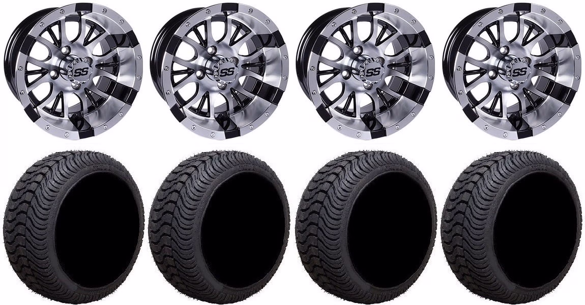 GTW Diesel 12" Golf Cart Wheels Machined 205x30 Cruze Tires Yamaha