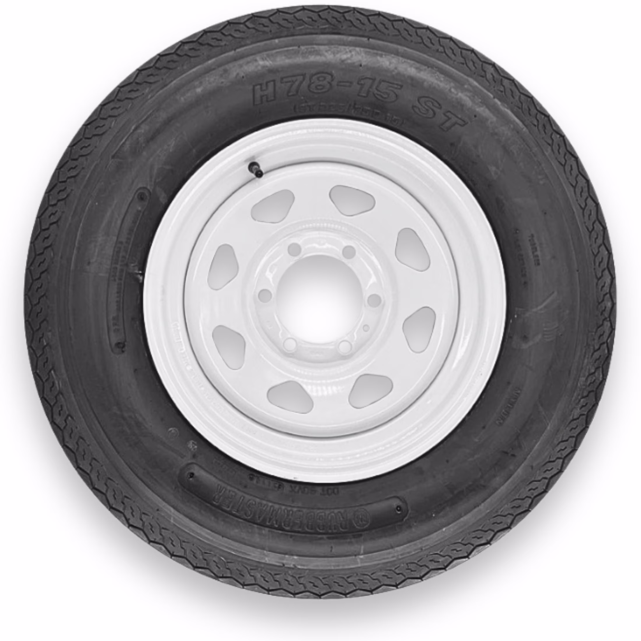 RubberMaster H78-15 (ST225/75D15) 8 Ply Highway Rib Tire and 6 on 5.5 Eight Spoke