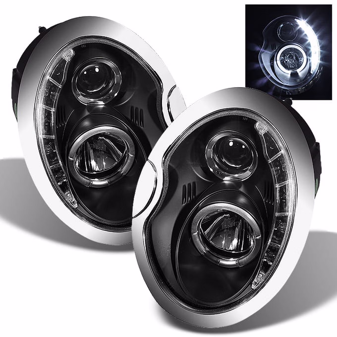 AKKON - For Mini Cooper Sport Coupe Black Bezel DRL Daylight LED Halogen Type Projector Headlights Replacement