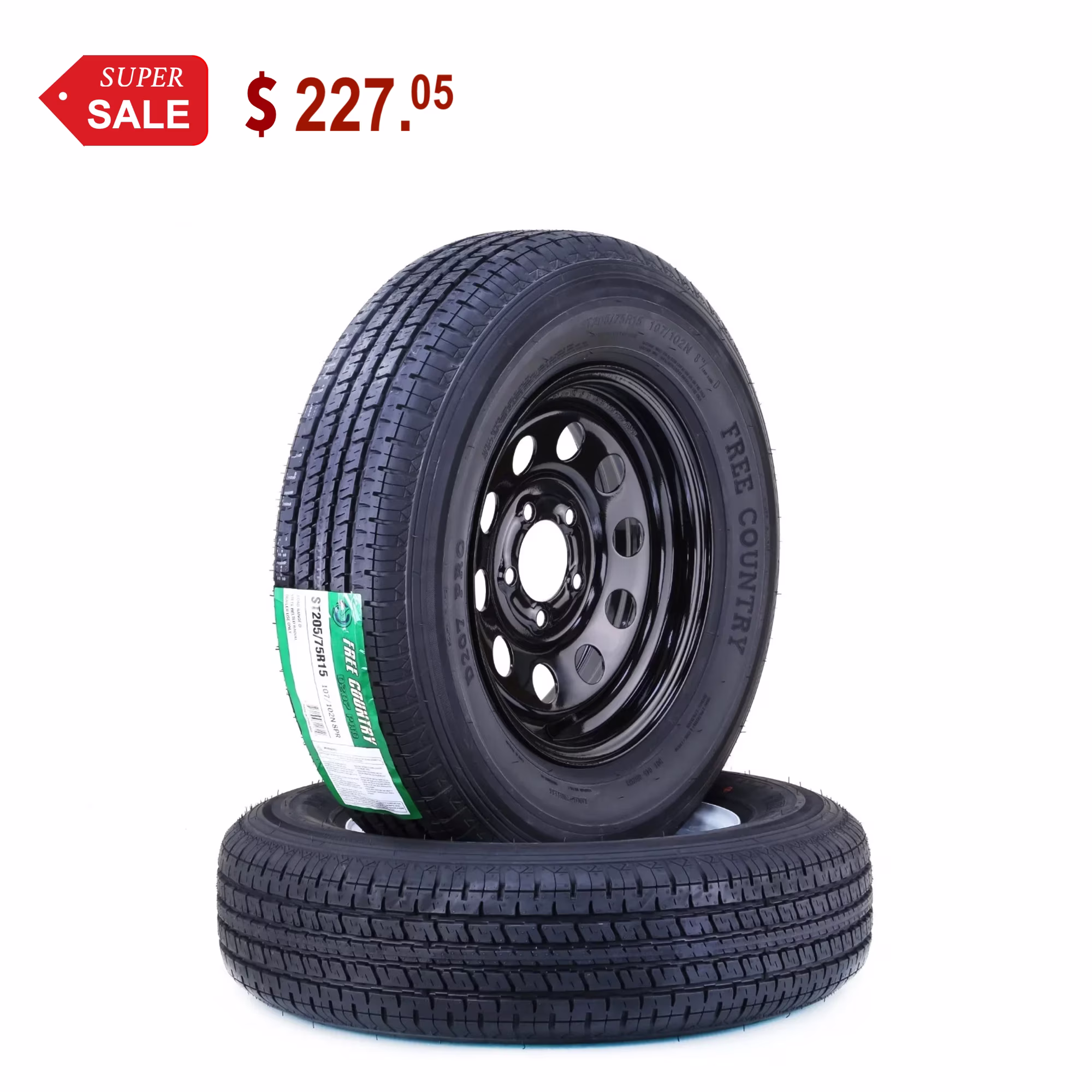 Free Country Trailer Tire Wheel Assembly ST205/75R15 8-Ply D 107M 5 Lug on 4.5" PCD Black Mod Rim ,SET 2