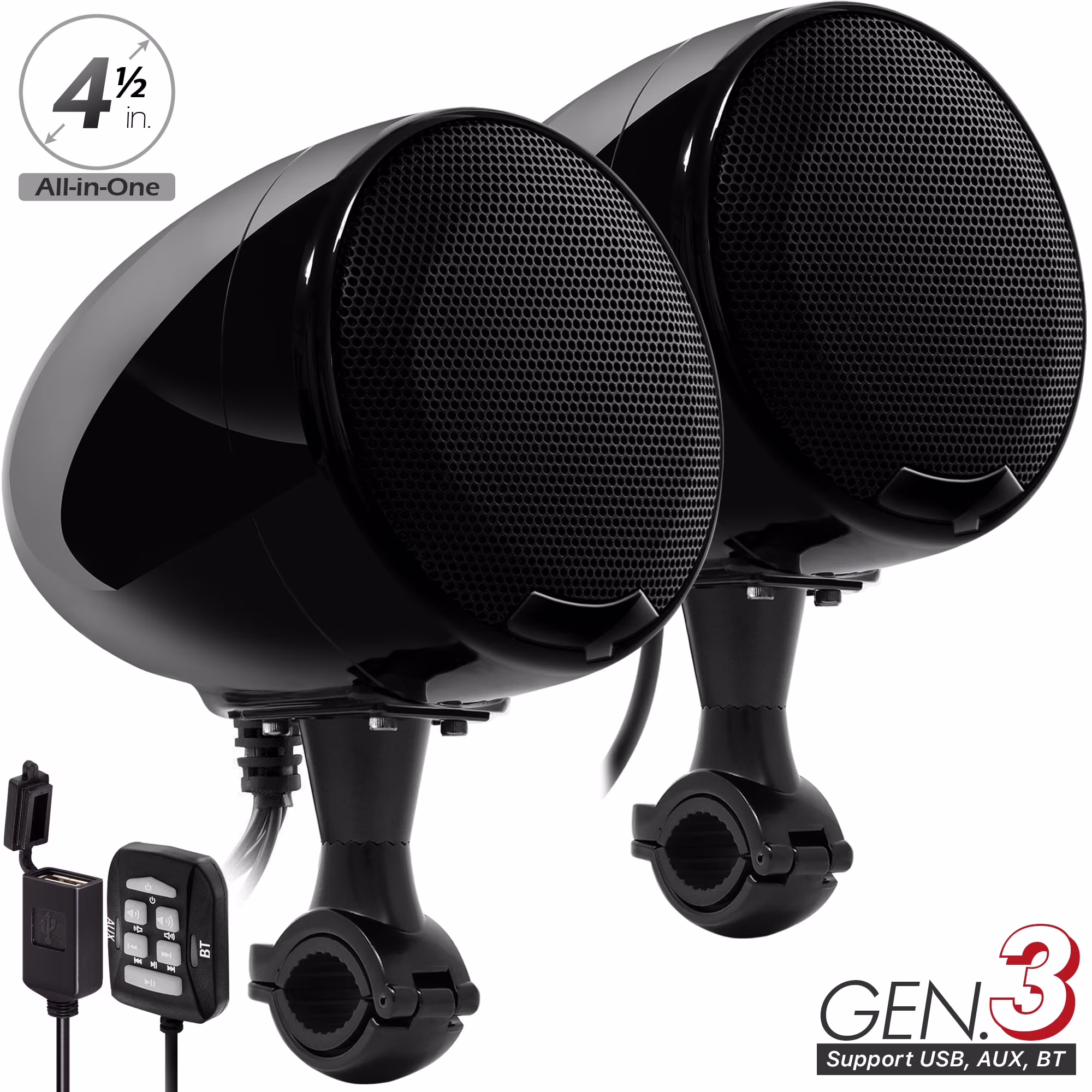GoHawk AN4-X All-in-One Built-in Amplifier 4.5" Waterproof Bluetooth Motorcycle Stereo Speakers Audio Amp System Harley ATV