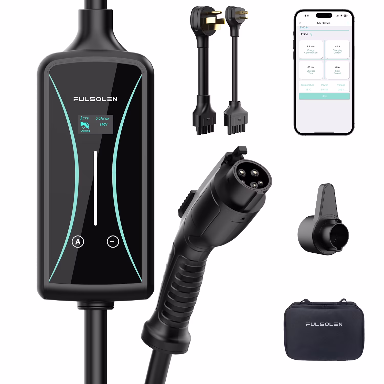 Fulsolen Level 2 EV Charger 32Amp/7.6kW/240V Electric Vehicle Charging Station with NEMA 5-15 and NEMA 14-50 Outlet
