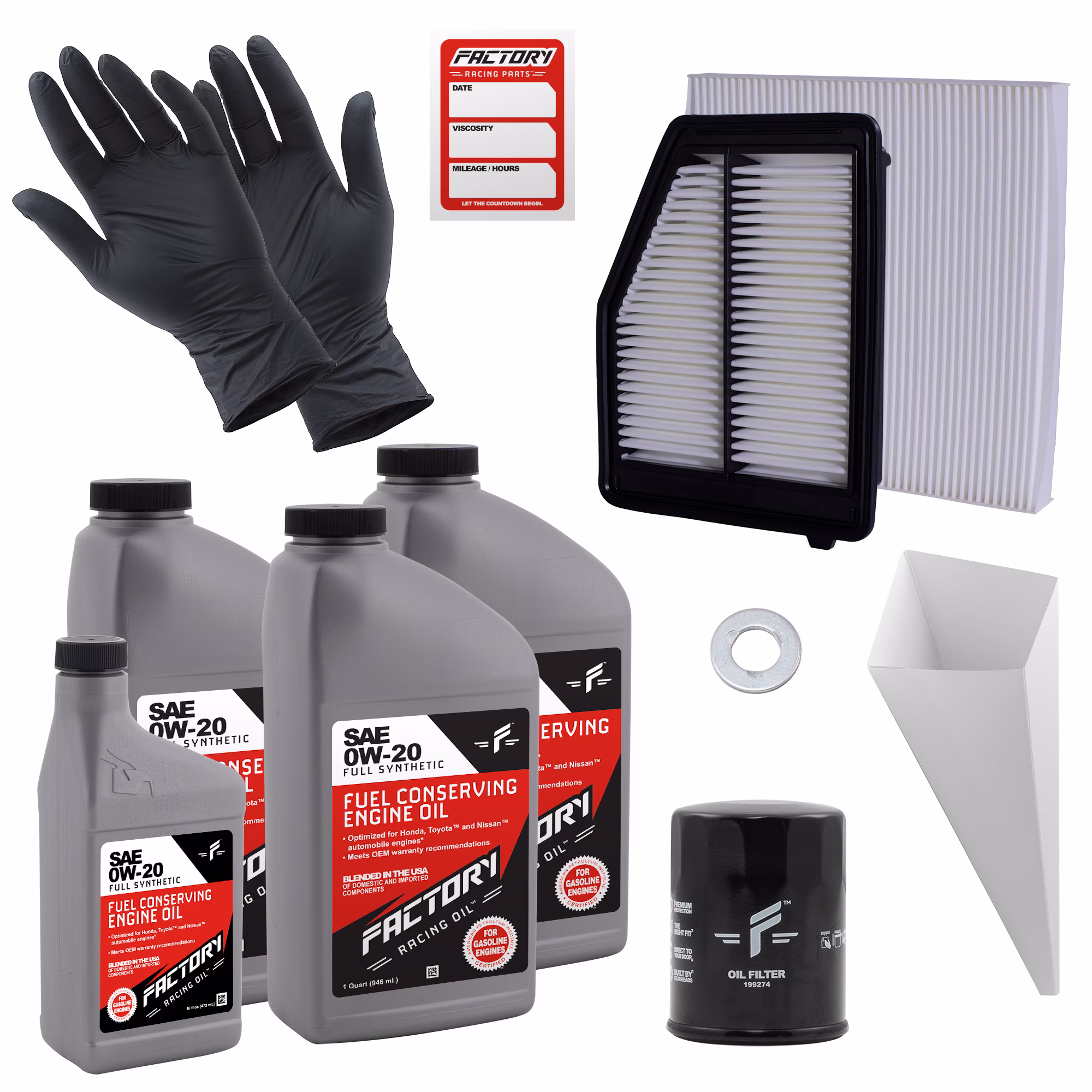 Factory Racing Parts Deluxe Oil Change Kit Compatible with Honda Civic 1.8L 2012-2015 0W-20 Full Synthetic - 3.5 Quarts