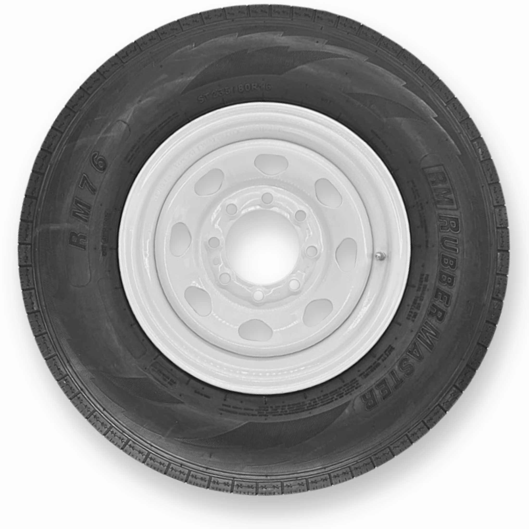RubberMaster ST235/80R16 12 Ply Highway Rib Tire and 8 on 6.5 Eight Spoke