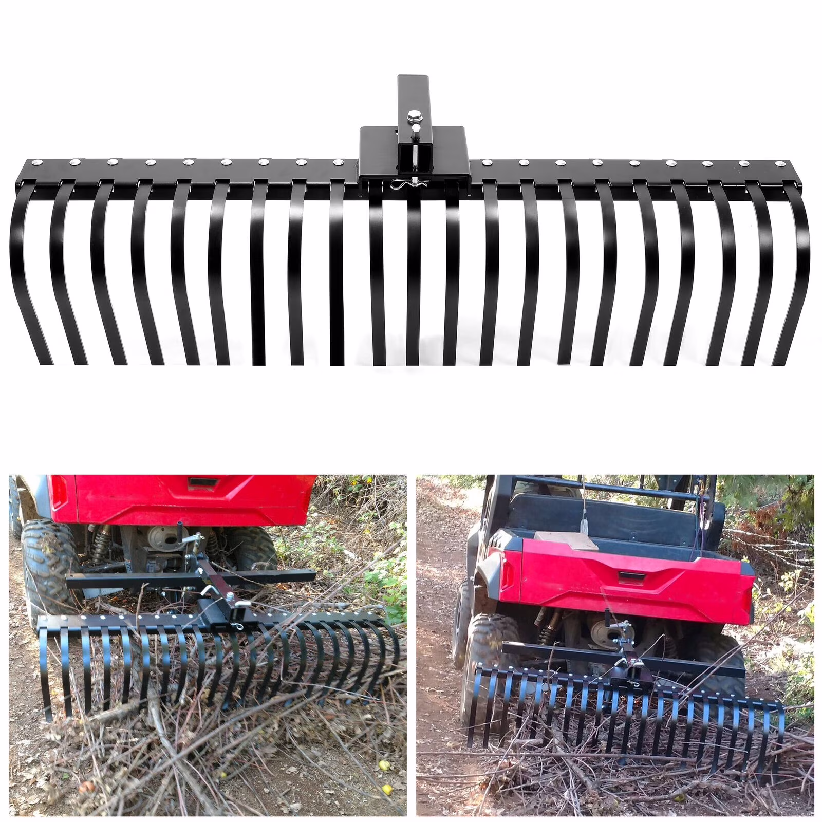 HECASA 3 Point 5 FT Pine Straw Needle Rake for Compact Tractors ATV UTV SxS 2" Hitch Receiver Coil Spring Tines Drag Behind Landscape Rake