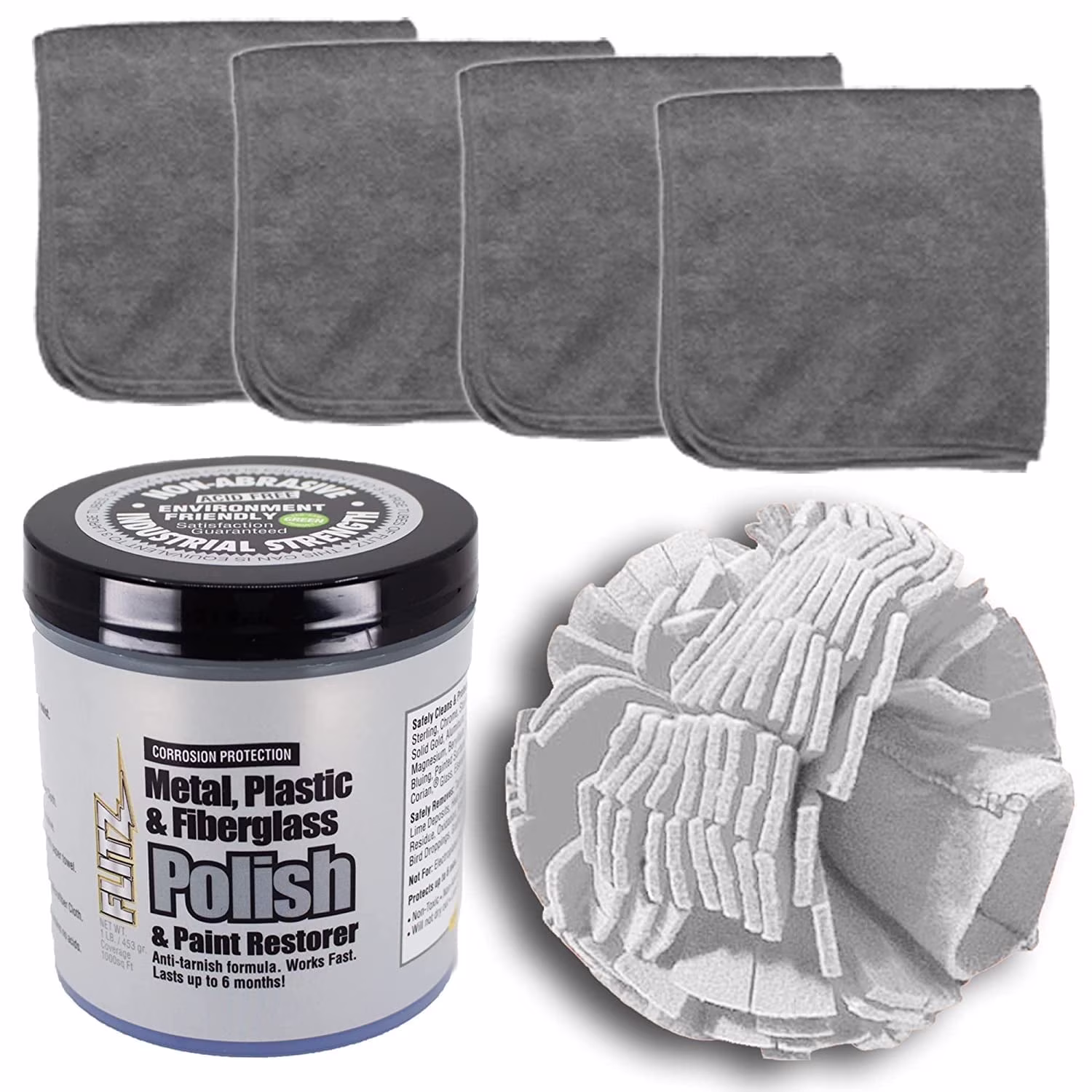 Flitz Car Buffing Kit (Basic) - USA-Made Car Care Kits for Vehicles - Includes 1lb Polish, 5" Buff Ball & 4 Microfiber Cleaning Cloths - Car Polishers and Buffers Kit to Remove Rust, Oxidation, & Mor