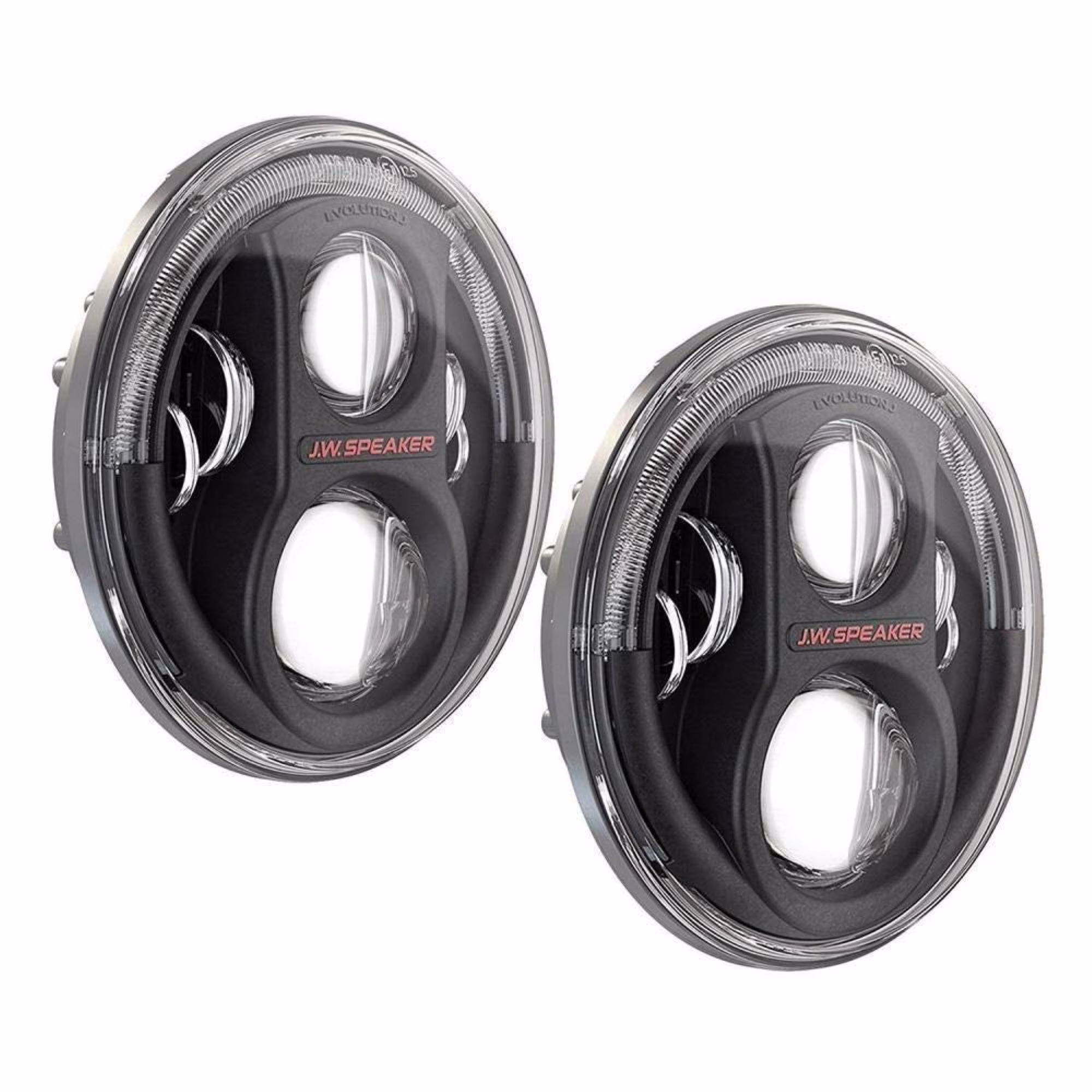 JW Speaker Universal Fit LED Headlights, Model 8700 Evolution J2 Series with Black Bezel, Set of 2