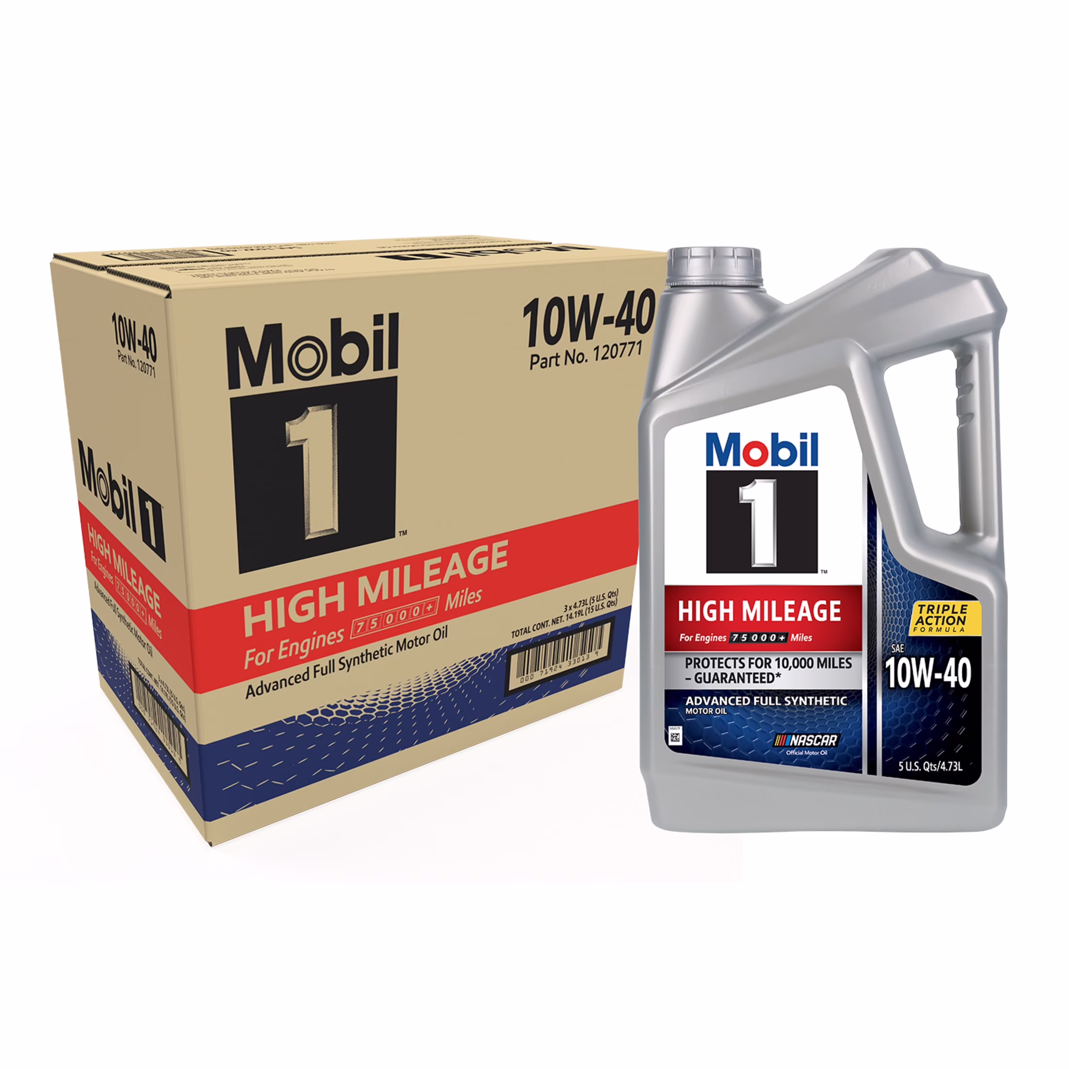 Mobil 1 High Mileage Full Synthetic Motor Oil 10W-40, 5 Quart (Pack of 3)