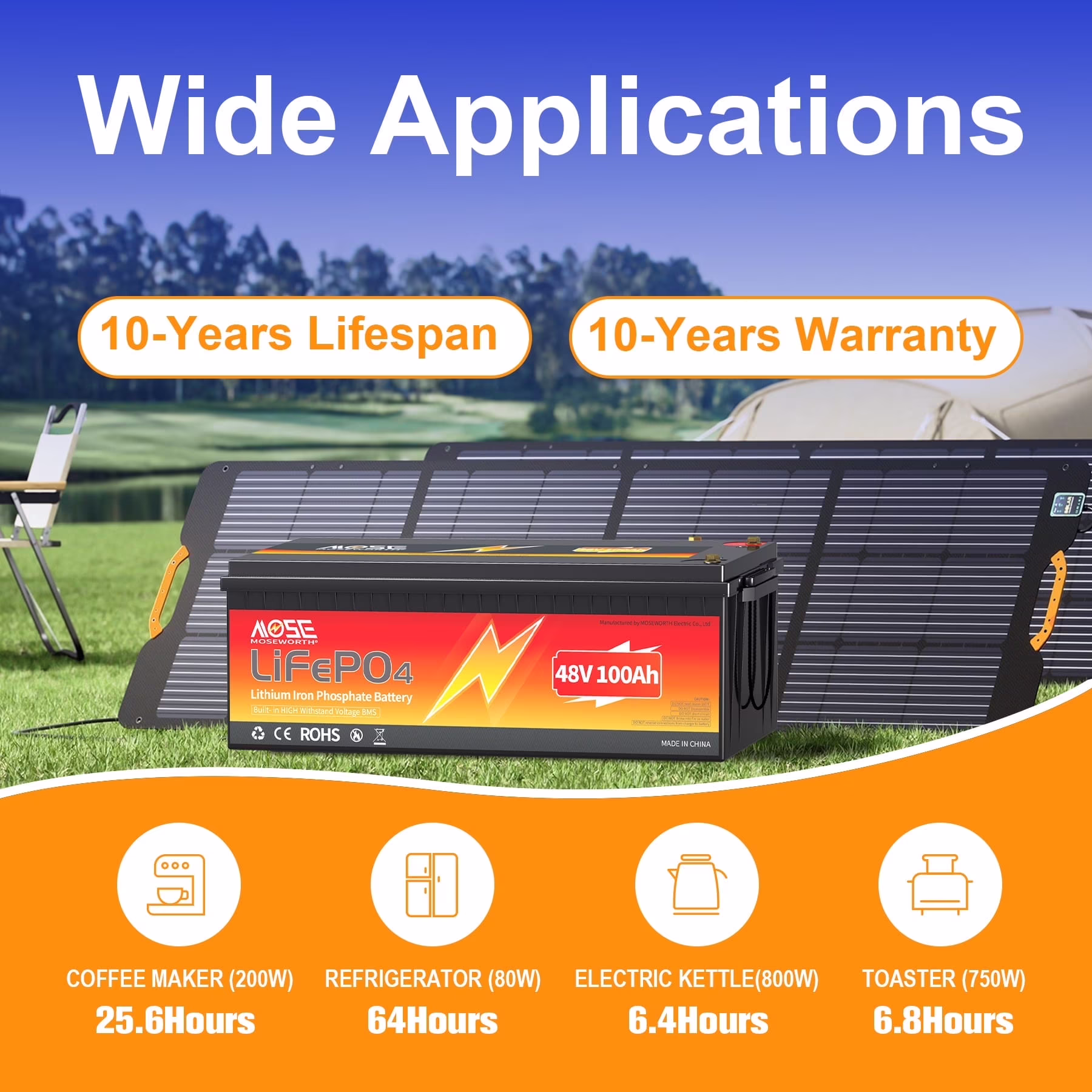 48V 100Ah Golf Cart LiFePO4 Battery,200A BMS,MOSEWORTH for RV,Solar,Trolling Motor,Marine