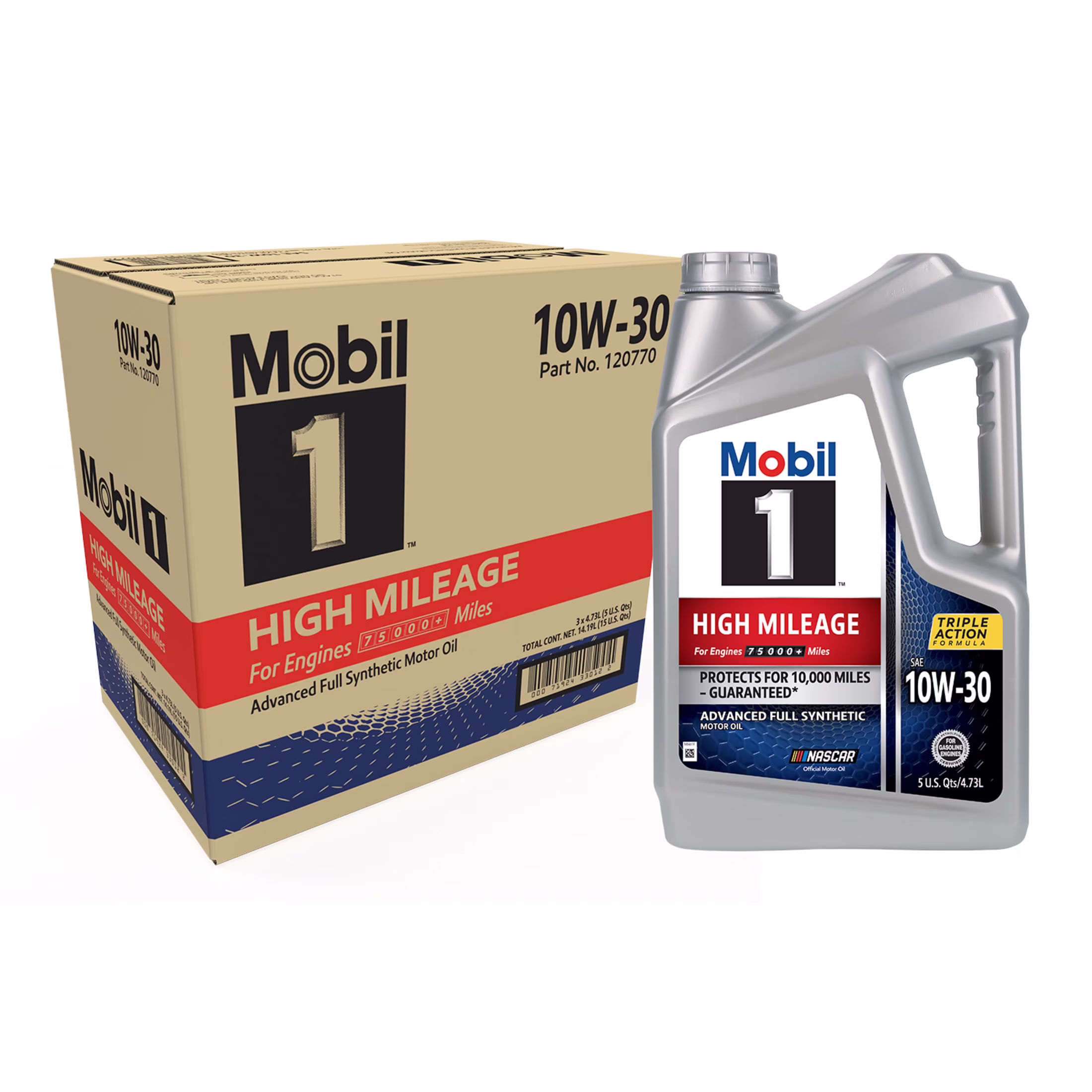 Mobil 1 High Mileage Full Synthetic Motor Oil 10W-30, 5 Quart (Pack of 3)