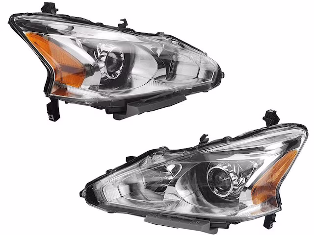 Halogen Headlight Assembly - Set of 2 - Chrome - Compatible with 2013 - 2015 Nissan Altima 4-Door Sedan 2014